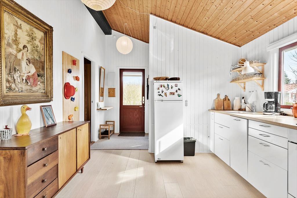 Åben entré der går videre ind i køkkenet.