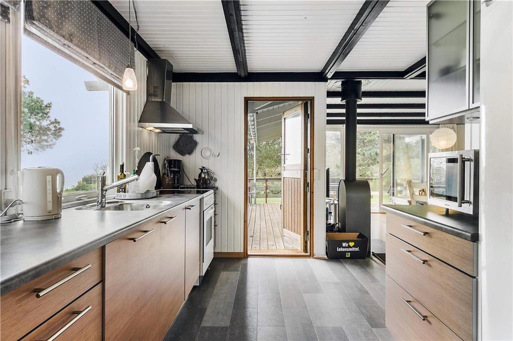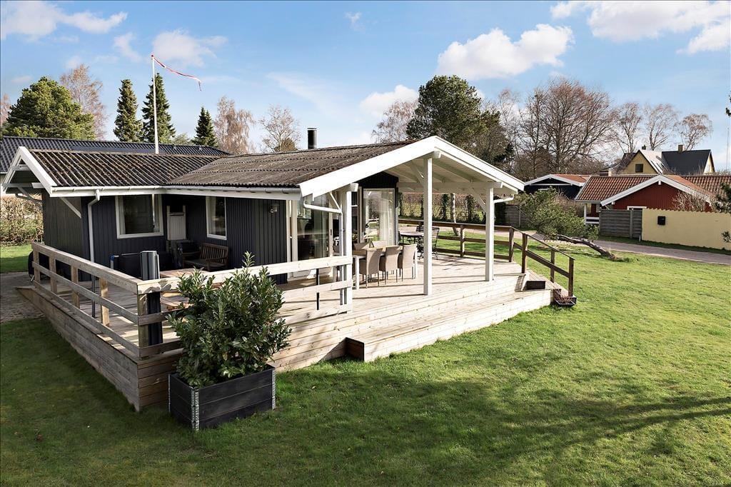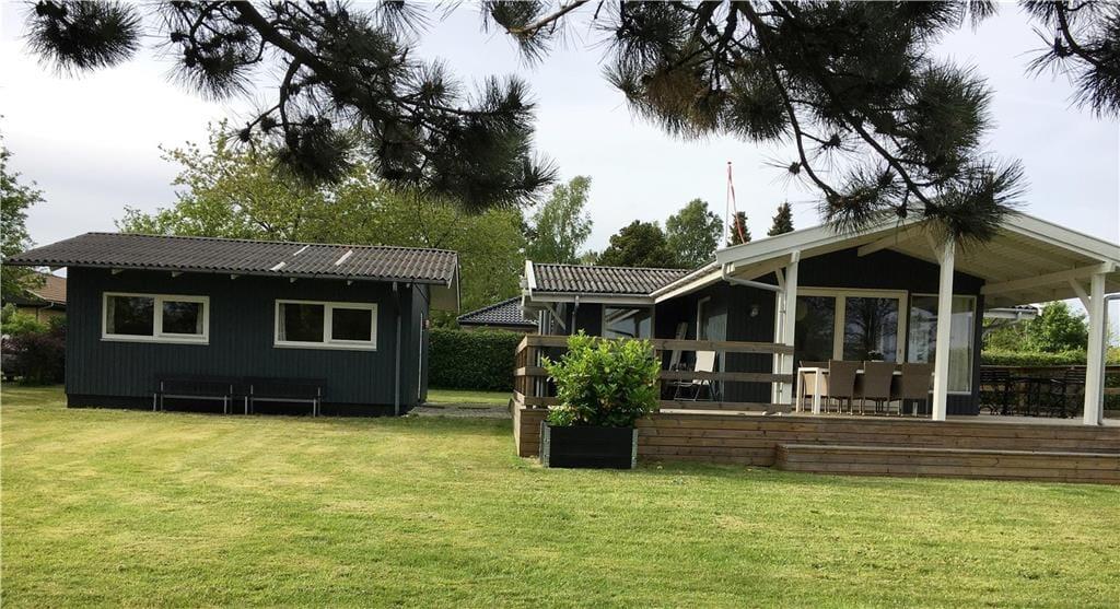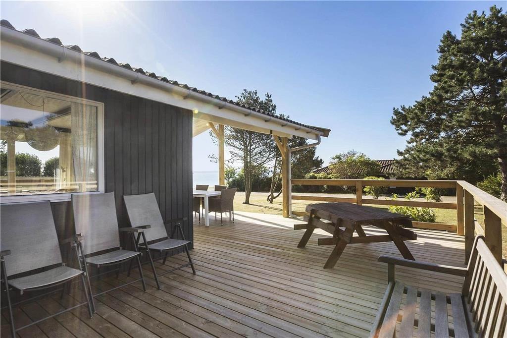 Pragtfuldt beliggende træferiehus – kun 50 meter fra dejlig børnevenlig sandstrand. Fantastisk HAVUDSIGT fra huset.