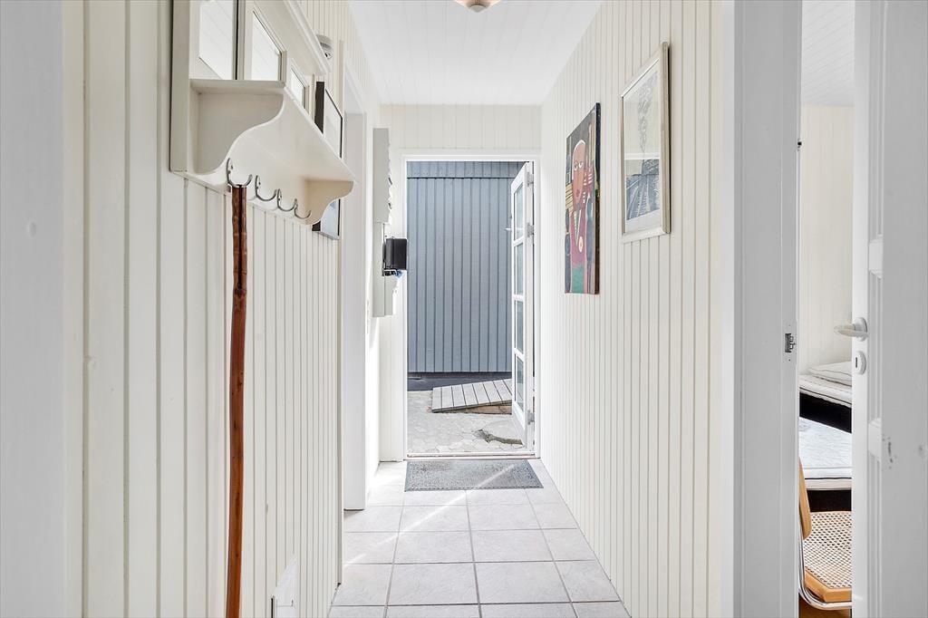 Huset indeholder: entré, fint badeværelse med toilet, håndvask og bruseniche. 2 gode soverum: 2 enkeltsenge + 1 skab, 1 dobbeltseng + 2 skabe. Dejlig lys stue med udgang til den store overdækkede terrasse. Hyggelig spiseplads og dejligt sofahjørne med brændeovn. Køkken med komfur med 4 kogeplader og ovn, emhætte, køleskab, mikroovn, kaffemaskine, elkedel, opvaskemaskine. Fra køkken ligeledes udgang til den dejlige terrassen. Anneks i haven på 40 m² med: badeværelse med sauna og vaskemaskine. I anneks er der 2 fine soverum: 2 enkeltsenge, 1 dobbeltseng. Særdeles velegnet til 2 familier. Der er obligatorisk slutrengøring på huset.