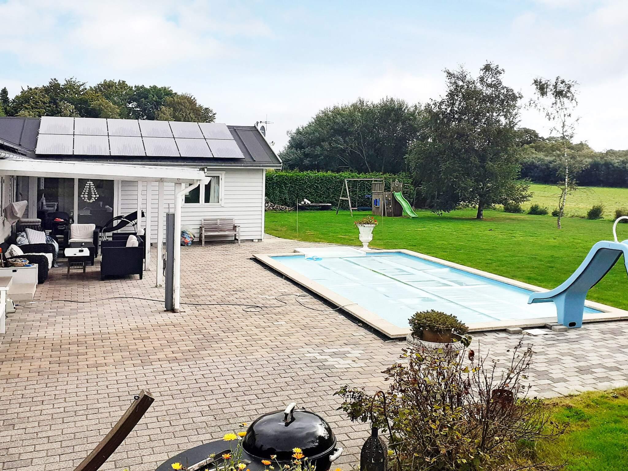Feriehus med 149 m² boligareal og 32 m² udendørs pool på den rummelige ejendom. Smukt ugeneret, i rolige og fredelige omgivelser med dejlig udsigt over de omkringliggende marker. Huset er oprindeligt opført i 1969 og er gennemgribende renoveret i 2006. Det har en rummelig entré med adgang til stort badeværelse med boblende spabad og behagelig gulvvarme. Der er tre soveværelser i huset; to af dem med hver en dobbeltseng, den tredje med en dobbeltseng og en udfoldelig dobbelt sovesofa. Derudover er der et rummeligt, separat anneks ved siden af ??på ejendommen med dobbeltseng og køle/fryseskab.