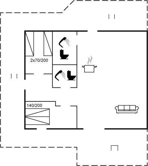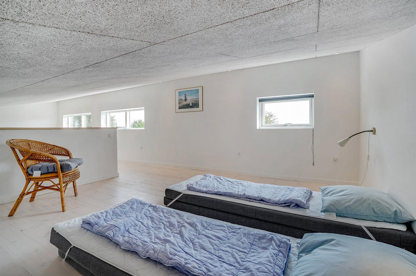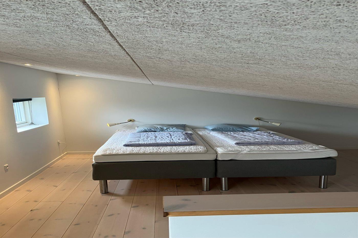 Der er i alt 2 soveværelser. Sovepladserne fordeler sig på: 2 sovepladser i dobbeltseng. 2 sovepladser i enkeltsenge. 2 sovepladser på madrasser. 2 af disse sovepladser befinder sig på husets hems. Derudover er der 1 stk. barneseng.