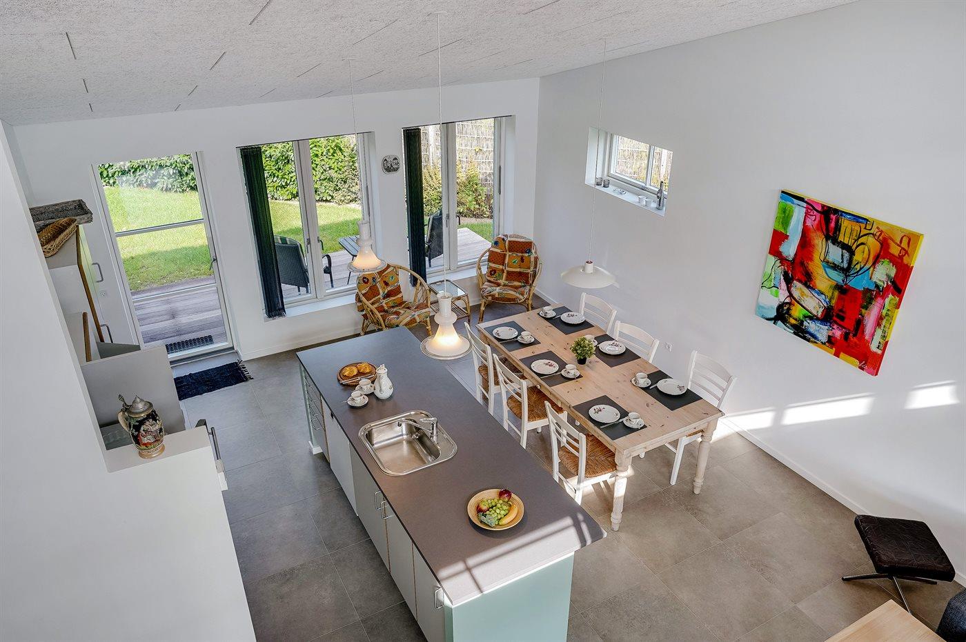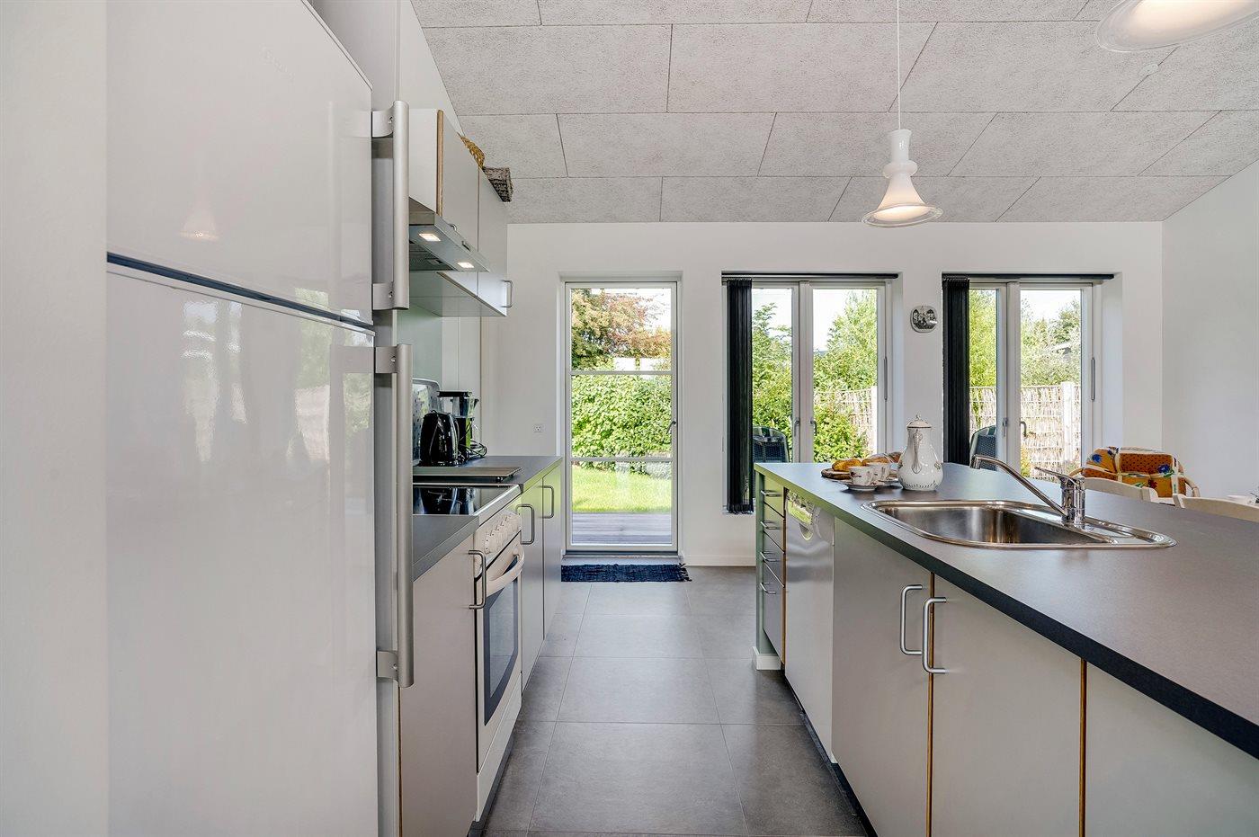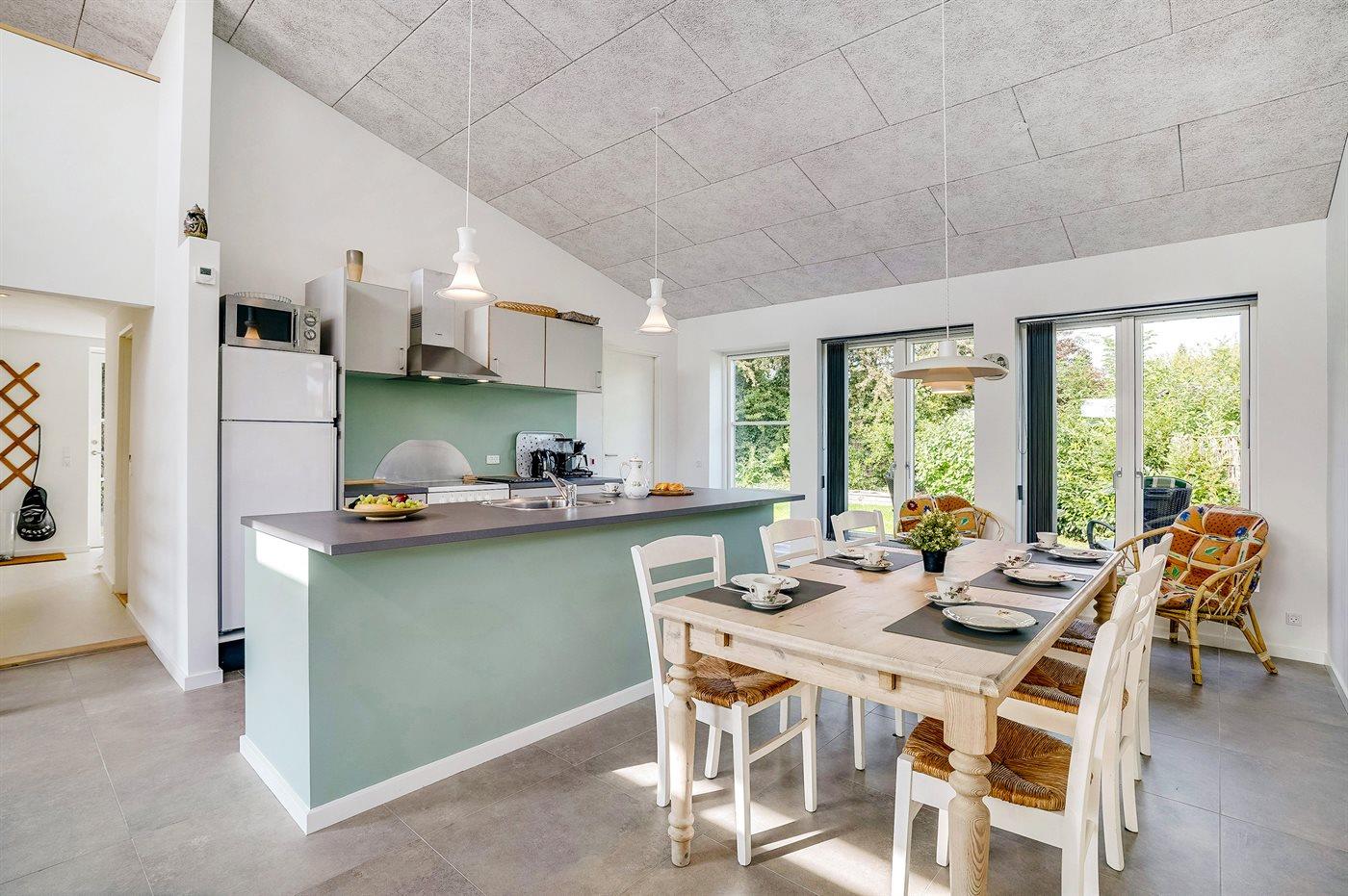 Køkkenet er udstyret med 1 køleskab. Der er 4 keramiske kogeplader, varmluftovn samt opvaskemaskine.