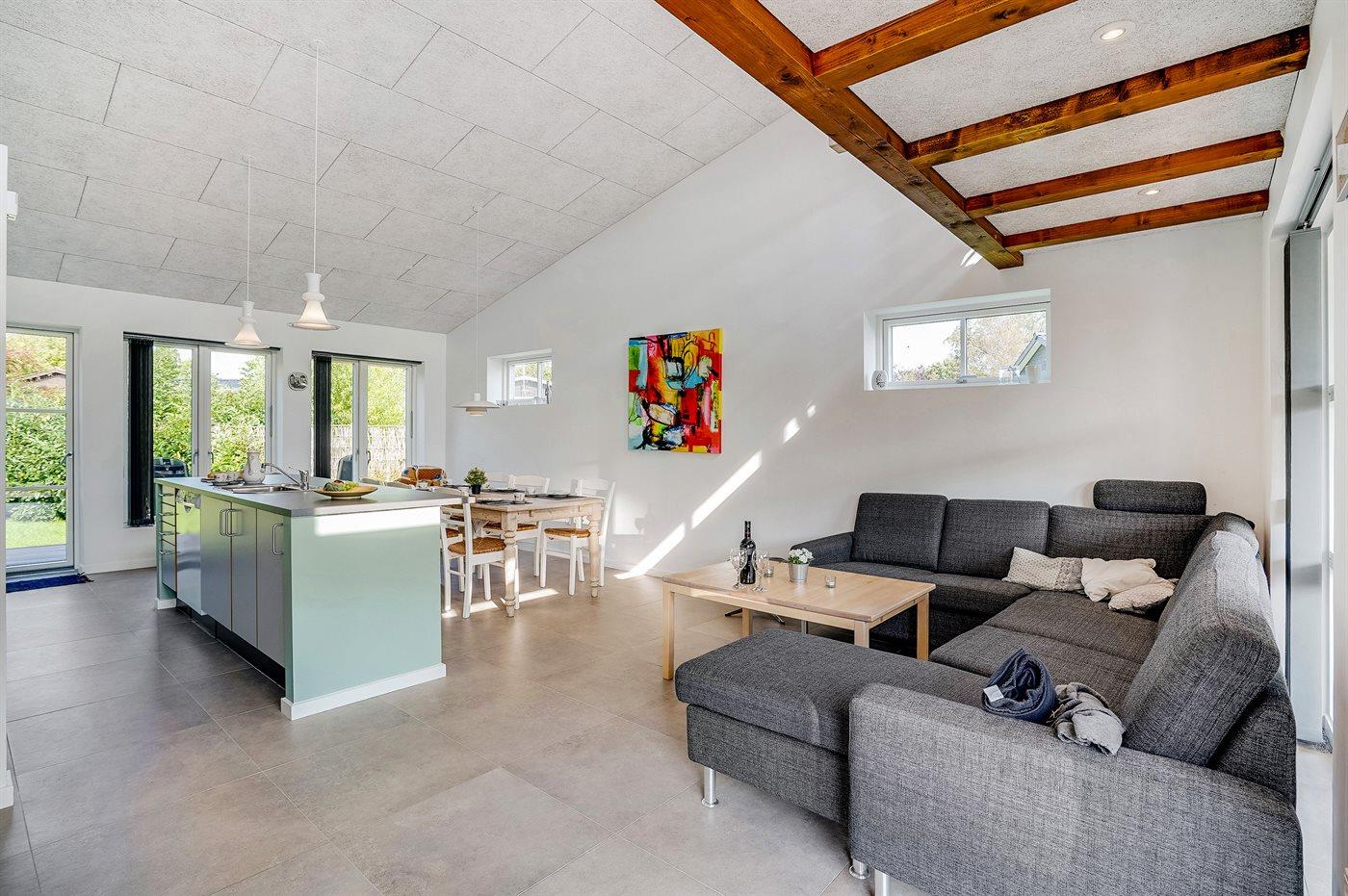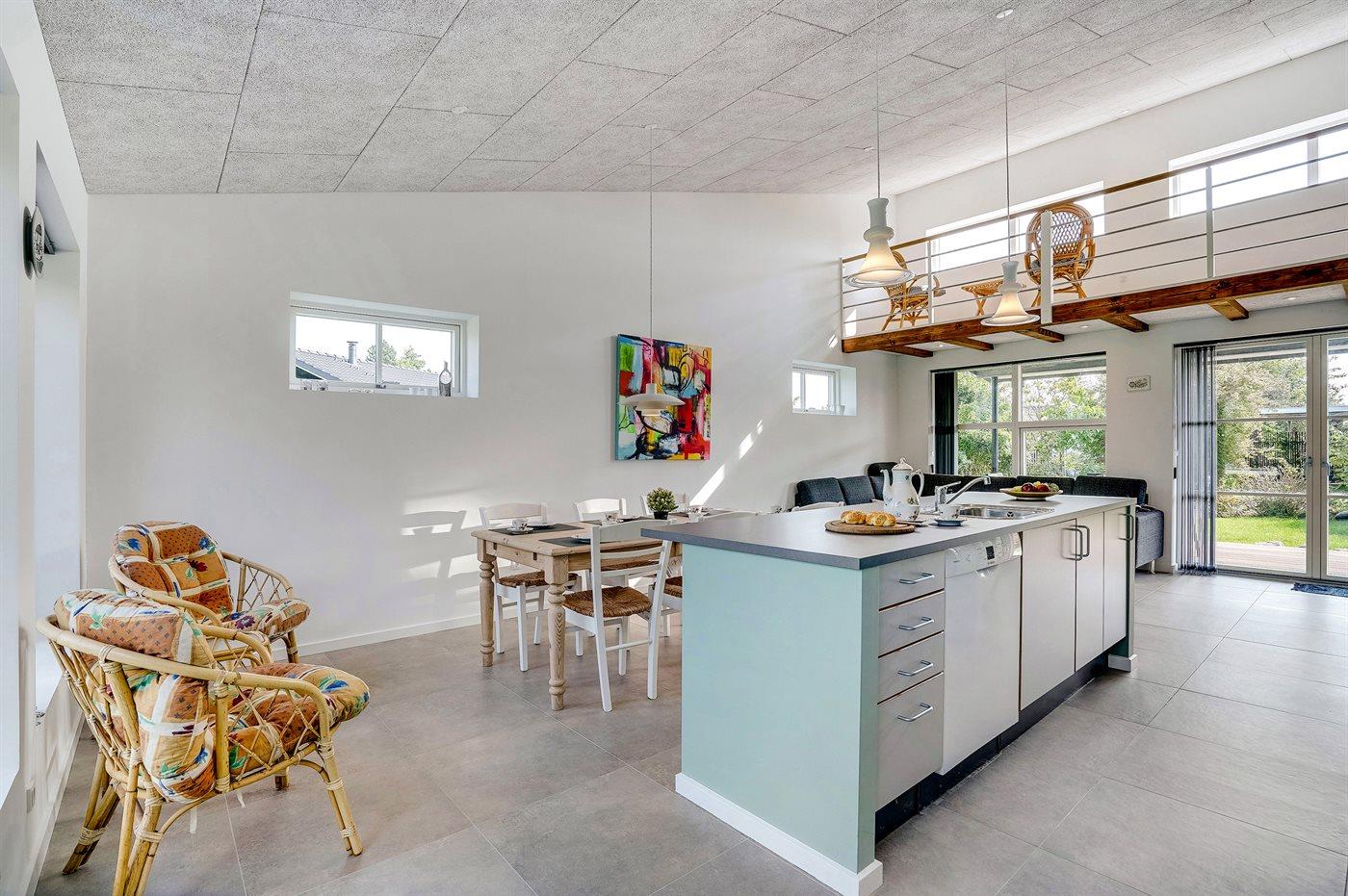 Nyopført (2019) sommerhus beliggende i et roligt og naturskønt område nær fin badestrand. Huset er indrettet lyst og indbydende med adgang til hems, hvor 2 af sovepladserne befinder sig, og hvorfra der er udsigt til vandet.