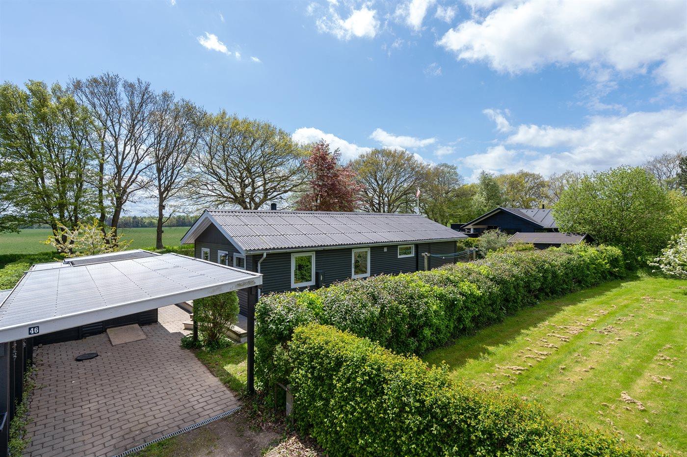 Flot lyst sommerhus med havudsigt, stor terrasse og rolig beliggenhed nær Rødvig.