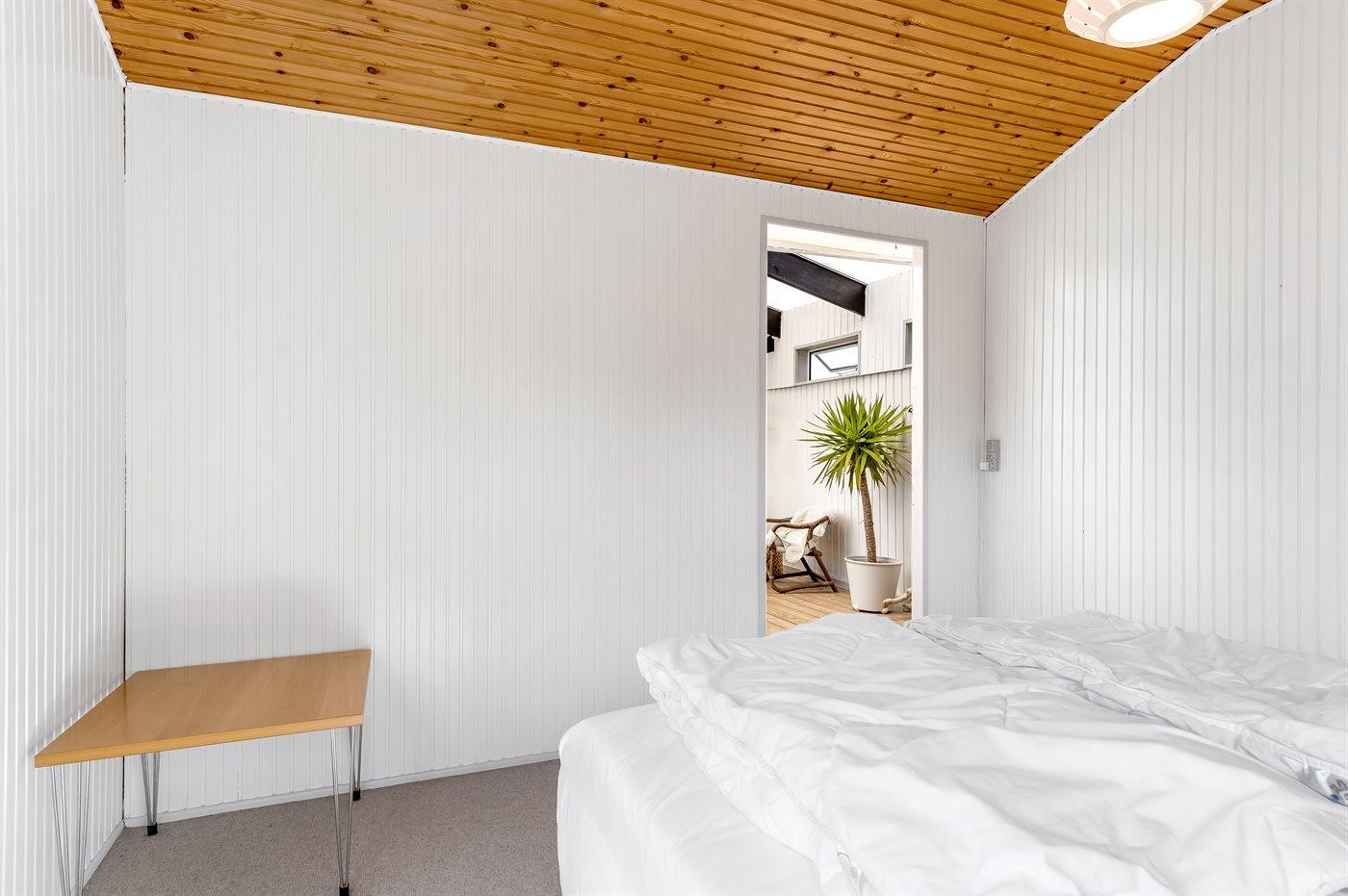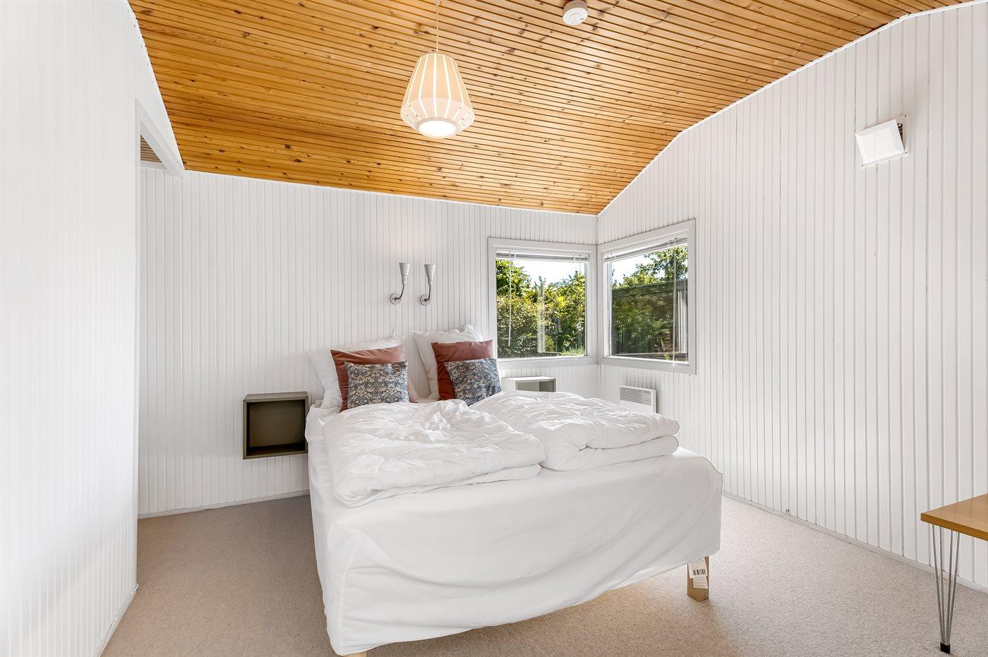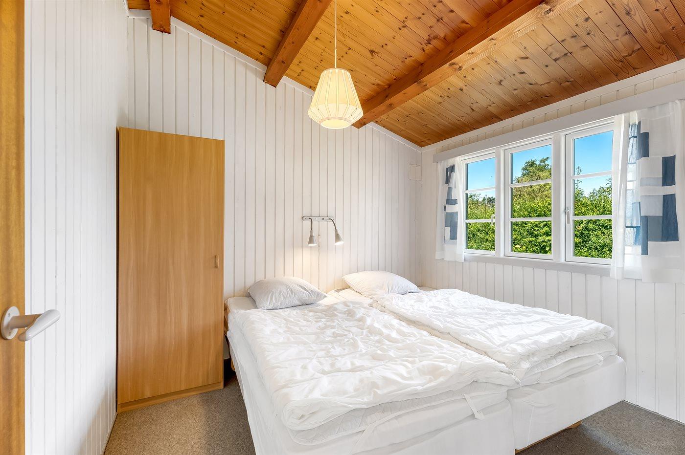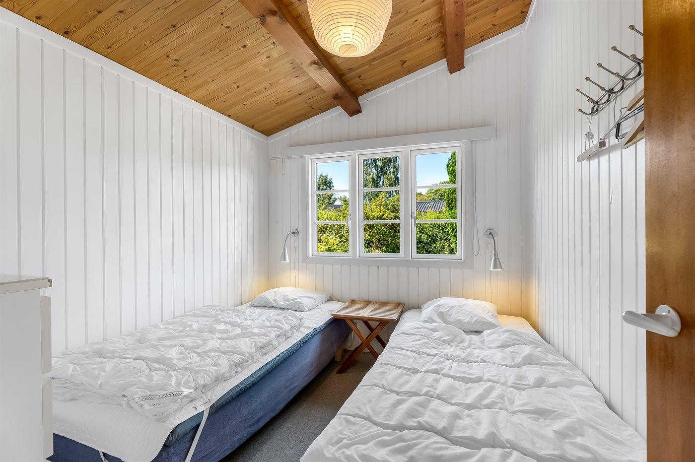 Der er i alt 3 soveværelser. Sovepladserne fordeler sig på: 4 sovepladser i dobbeltsenge. 2 sovepladser i enkeltsenge. Derudover er der 1 stk. barneseng.