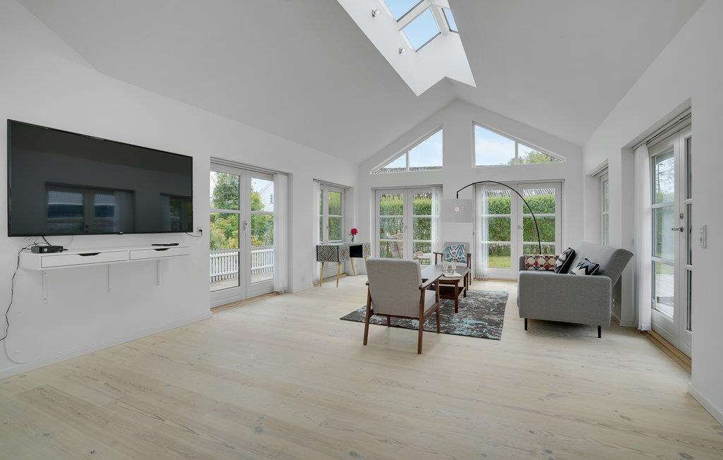 Skønt arkitekttegnet sommerhus i Rødvig med stor terrasse, åbent køkken og tæt på strand og havn.
