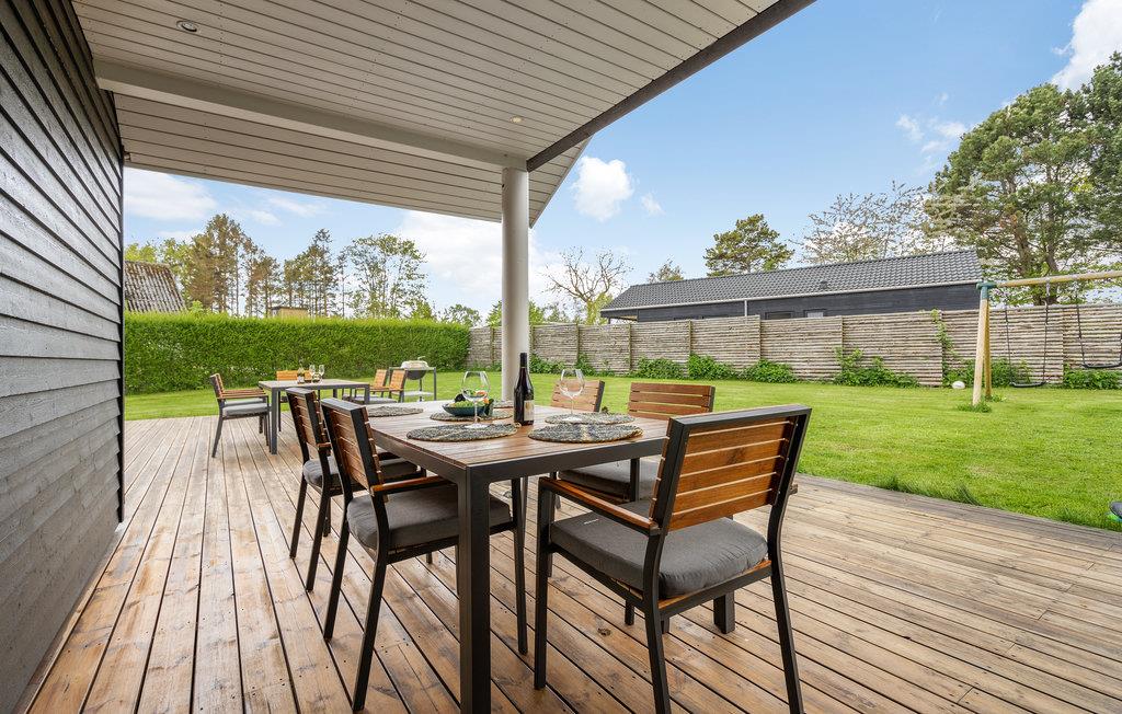 Her er der ikke gået på kompromis med valg af materialer, hverken inde eller ude. Huset er velegnet til to familier med tre dejlige soveværelser og to badeværelser. Huset indeholder også et kæmpestort åbent køkken i forbindelse med spiseområdet og den hyggelige stue. I lofterne er indbyggede vinduer, som giver et fantastisk lysindfald. Fra stuen er der udgang til den store terrasse med mulighed for afslapning og solbadning, inden aftensmaden skal tilberedes på den store kuglegrill.