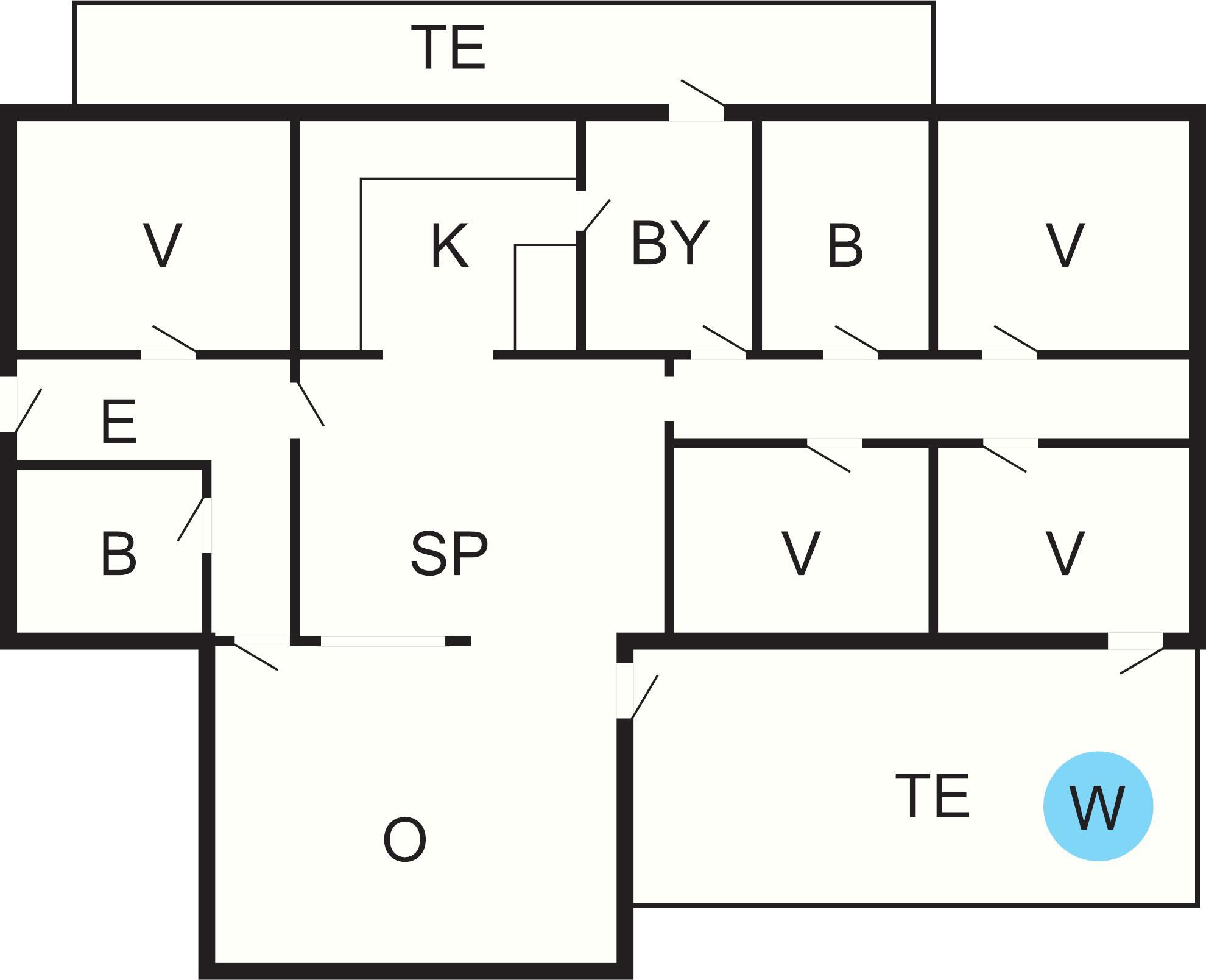 4 Soveværelser: (1DS)+(2S)+(2S)+(2K+1O)