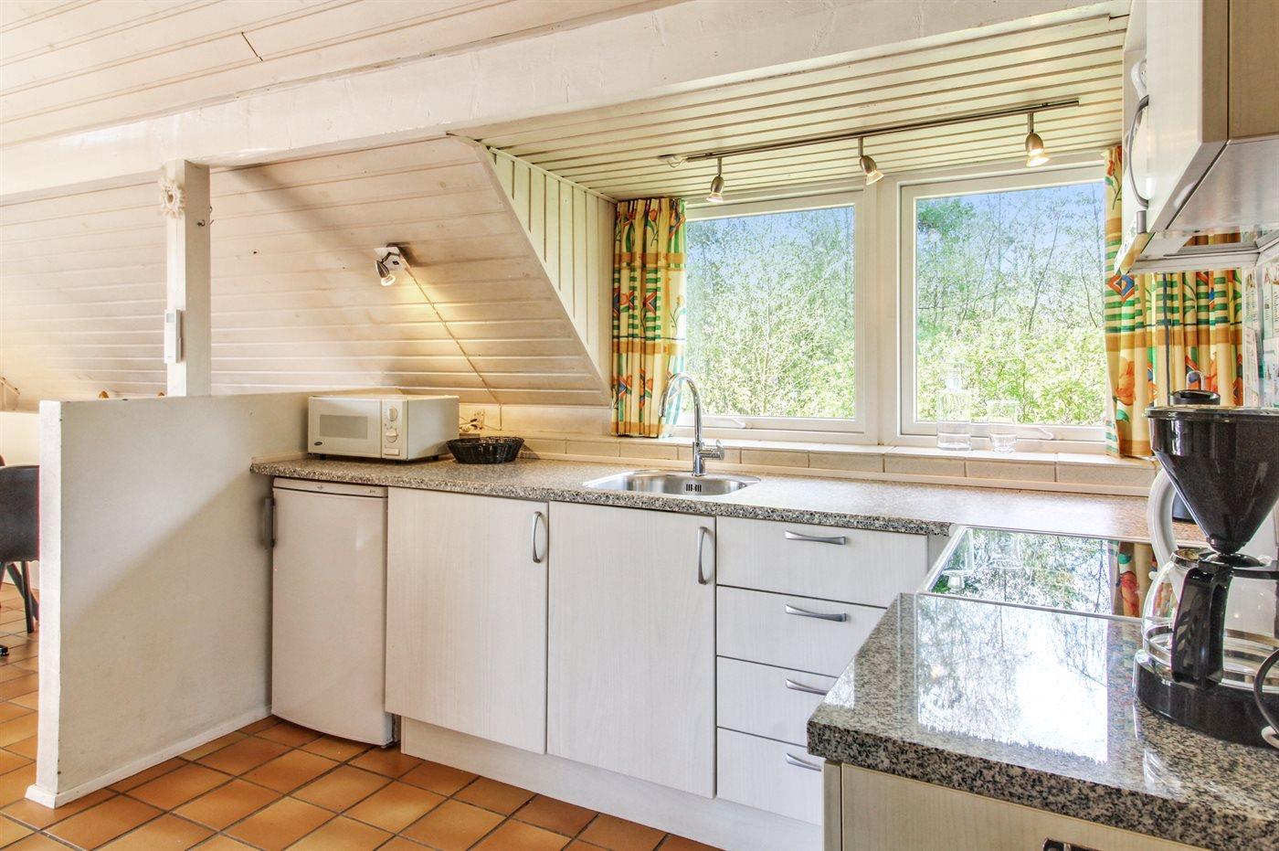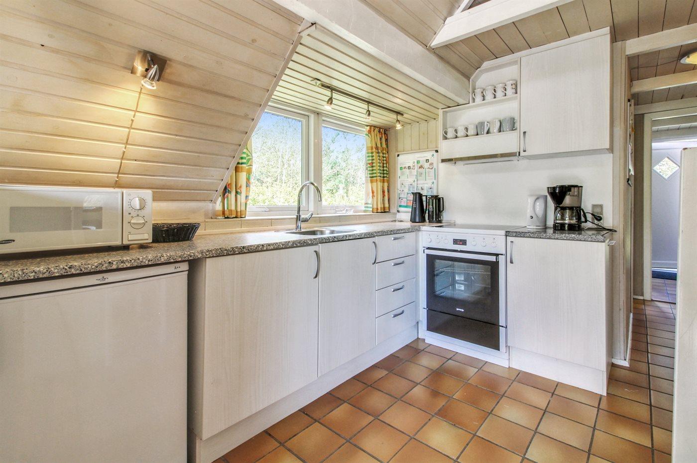 Køkkenet er udstyret med 1 køleskab. Der er 4 keramiske kogeplader, varmluftovn, mikrobølgeovn.