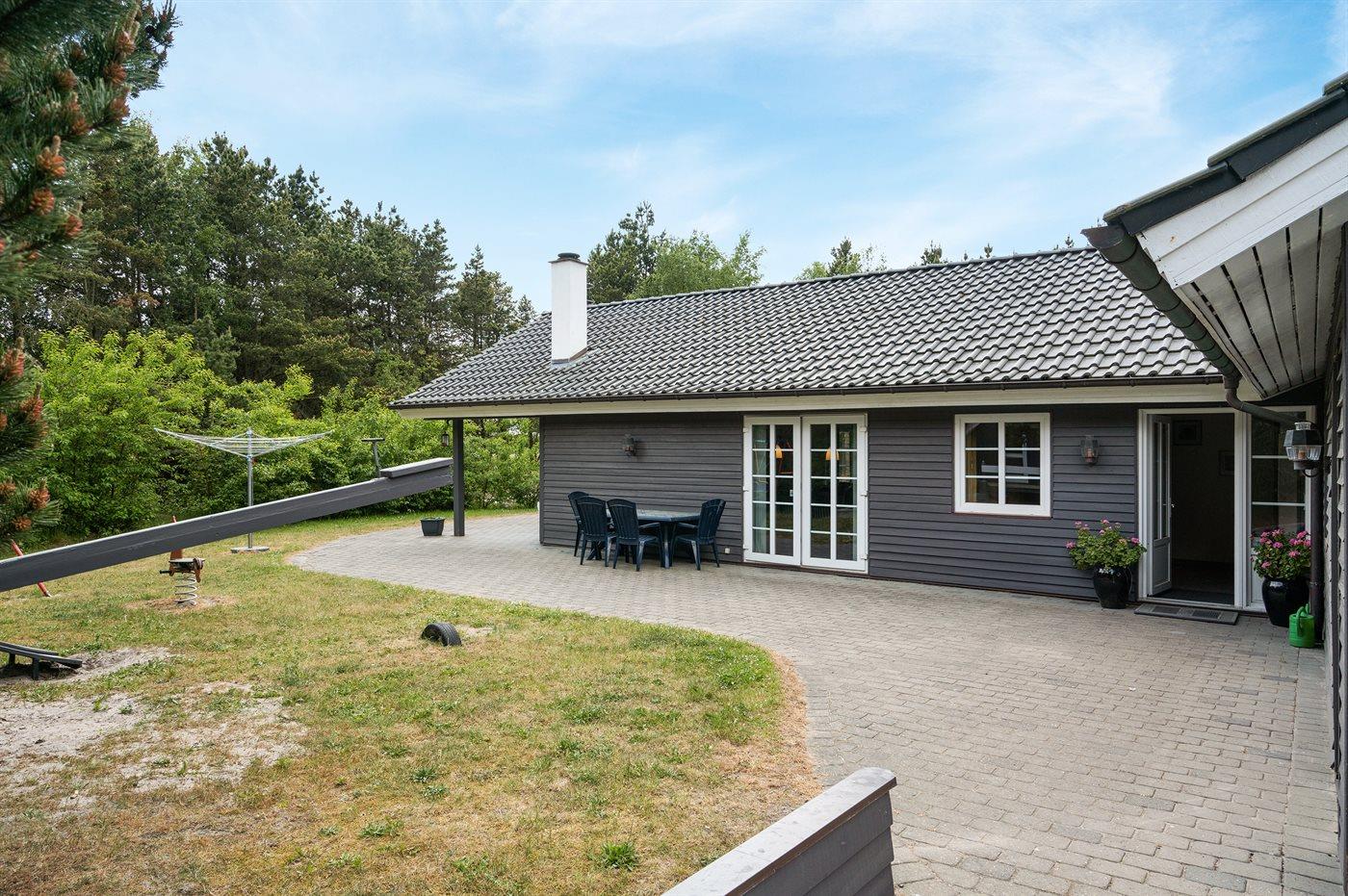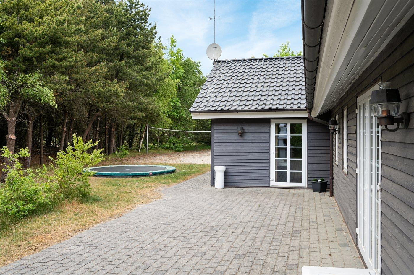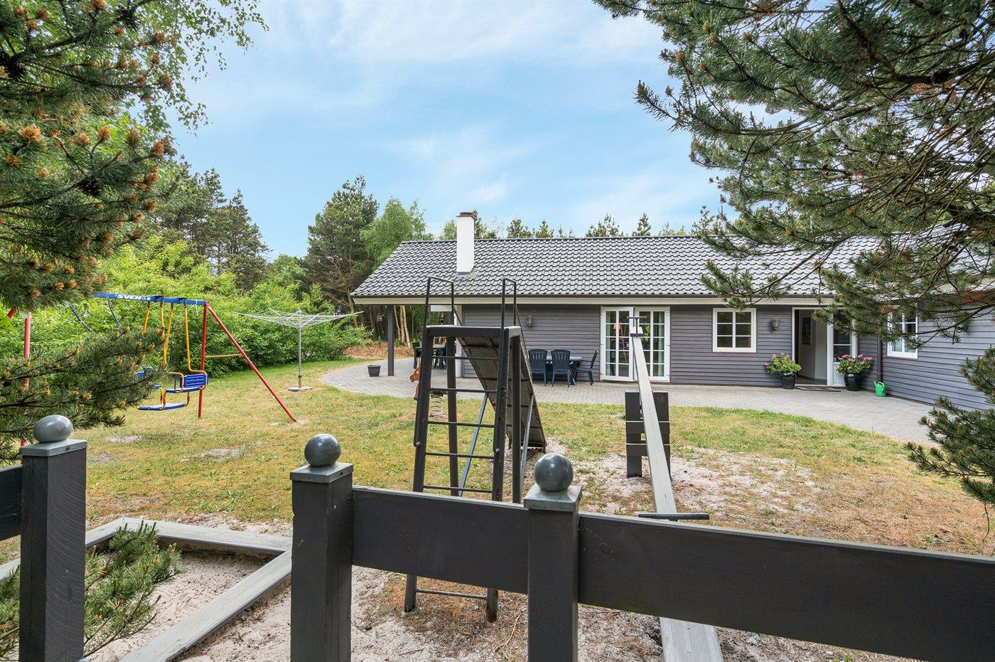 Ferieboligen er beliggende på en 2500 m² stor naturgrund. Der er 800 m til havet. Nærmeste forretning er beliggende i en afstand af 1500 m. Til ferieboligen hører 500 m² terrasseareal. Gynge. Sandkasse. Legehus. Trampolin. Beachvolley. Grill til rådighed. Parkering ved ferieboligen.