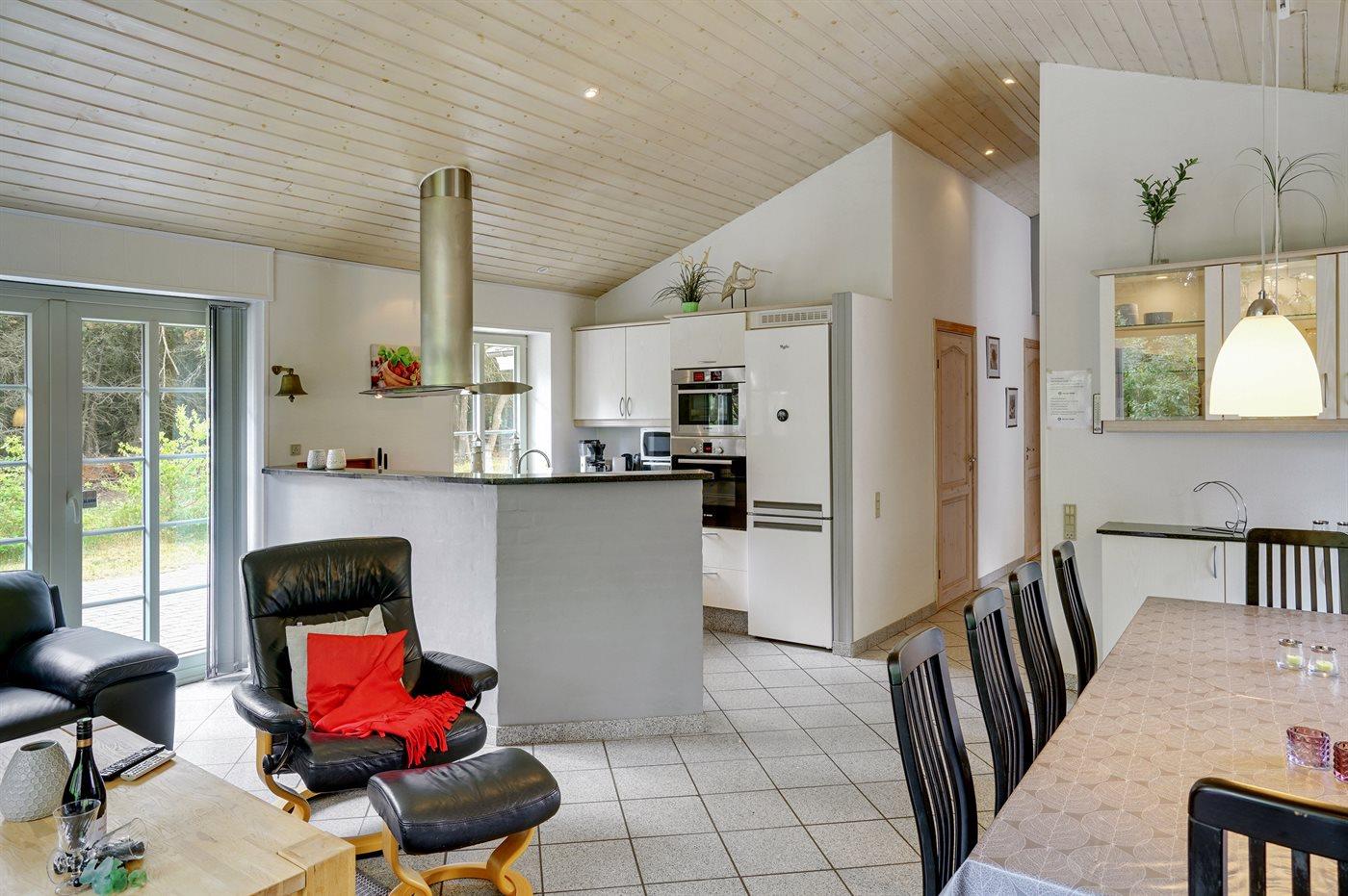 Sommerhuset egner sig til 10 personer. Ferieboligen er på 250 m² og er bygget i 2003. Det er tilladt at medbringe 2 husdyr. Der er gulvvarme i gangen. Ferieboligen har vaskemaskine. Tørretumbler. Frysekapacitet på 10 liter. Der er desuden brændeovn. Endvidere træpilleovn.