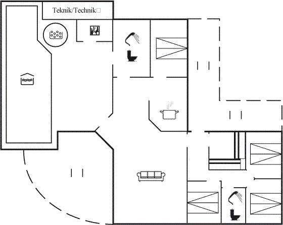 Der er 2 badeværelser med bruseniche og 2 toiletter. Der er gulvvarme på 2 badeværelser. I saunaen er der mulighed for afslapning.