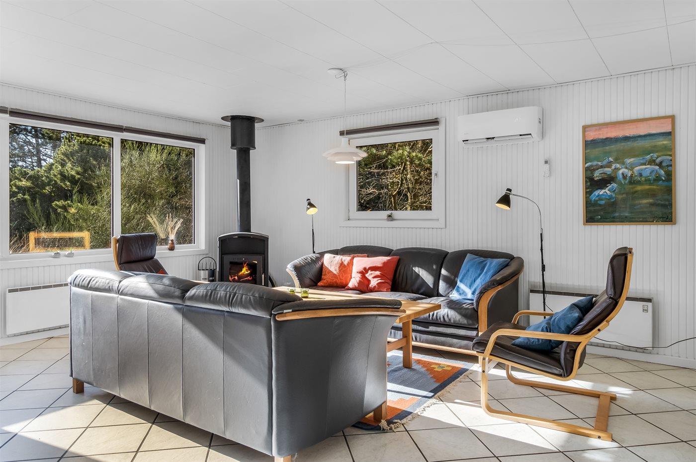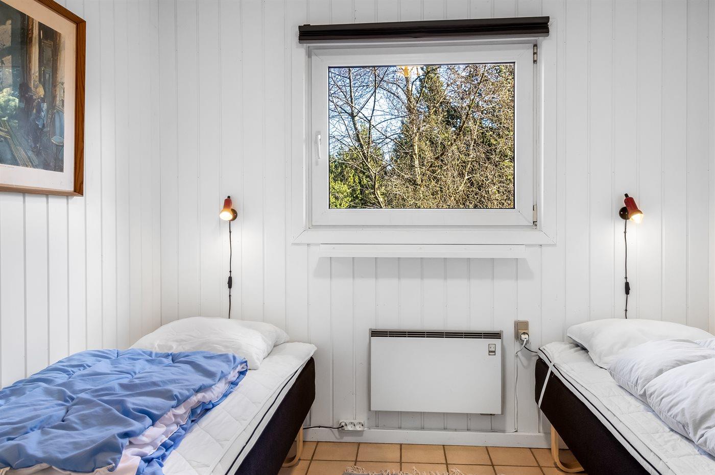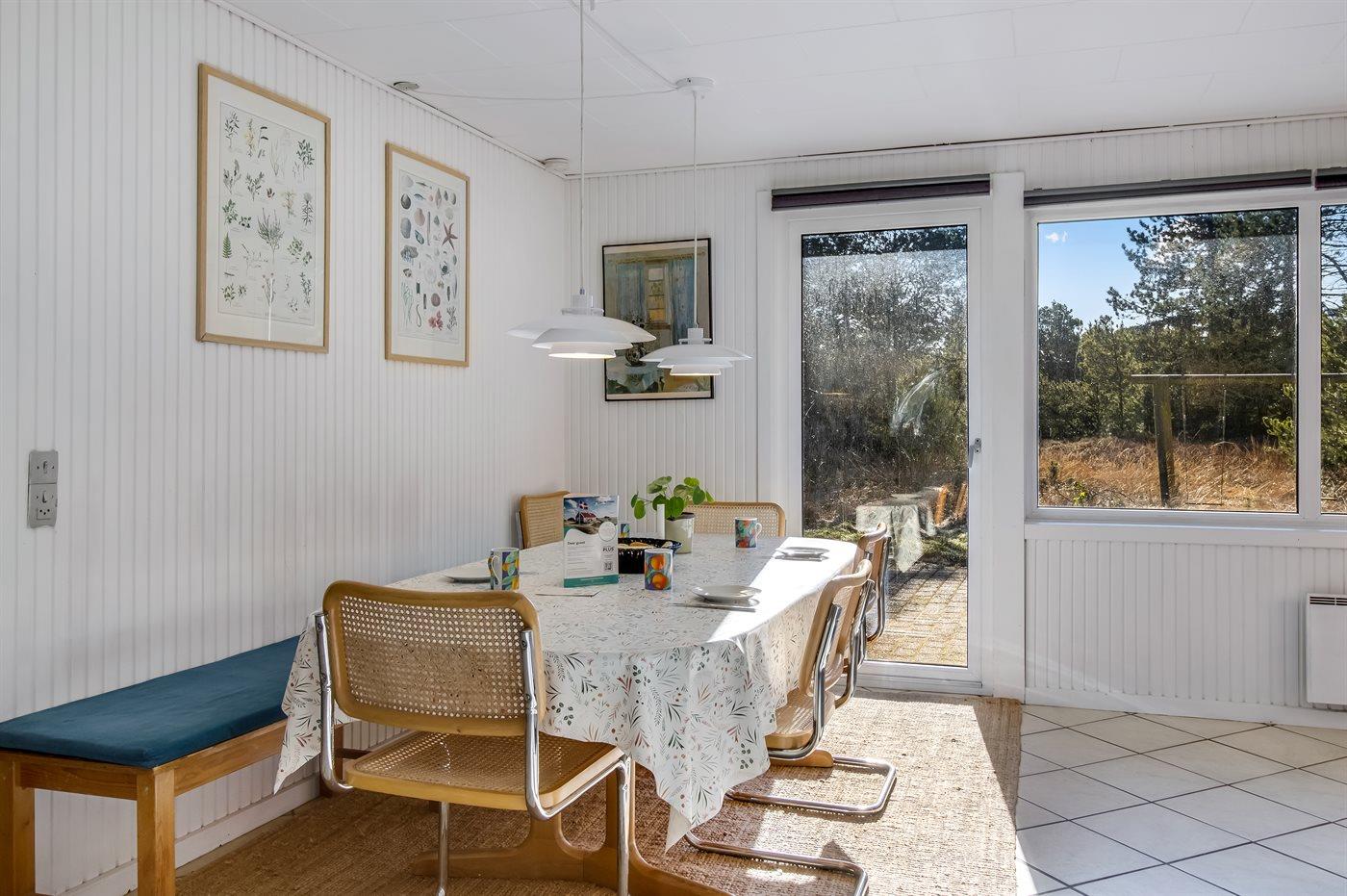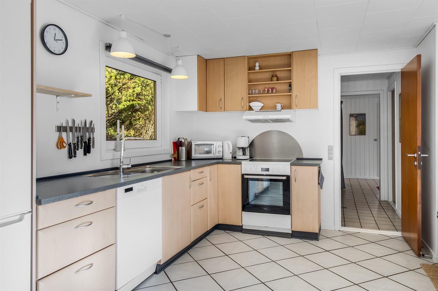 Sommerhus i træ, bygget i 1967 og renoveret i 1997, beliggende på en naturgrund. Til huset hører et stort, åbent terrasseareal med havemøbler. Åbent køkken med bl.a. fryser, komfur med keramiske kogeplader, mikrobølgeovn og opvaskemaskine. Køkkenet ligger i åben forbindelse med opholdsstuen med spiseafdeling, brændeovn, TV med parabol (digital - tyske programmer) og stereoanlæg samt udgang til terrassen. Husets sovepladser fordeler sig på 3 soveværelser med dobbeltseng samt 1 værelse med 2 enkeltsenge. Badeværelse med gulvvarme, bruseniche, 6-pers. spa (standvand) samt direkte adgang til husets sauna. Endnu et badeværelse med bruser. Vaskemaskine og tørretumbler til rådighed. Der er installeret energibesparende varmepumpe i huset. Klinkegulve overalt. Gynge på grunden til de små feriegæster. Sommerhuset er velegnet til 2 familier og ligger i et naturskønt område med gode aktivitetsmuligheder.
