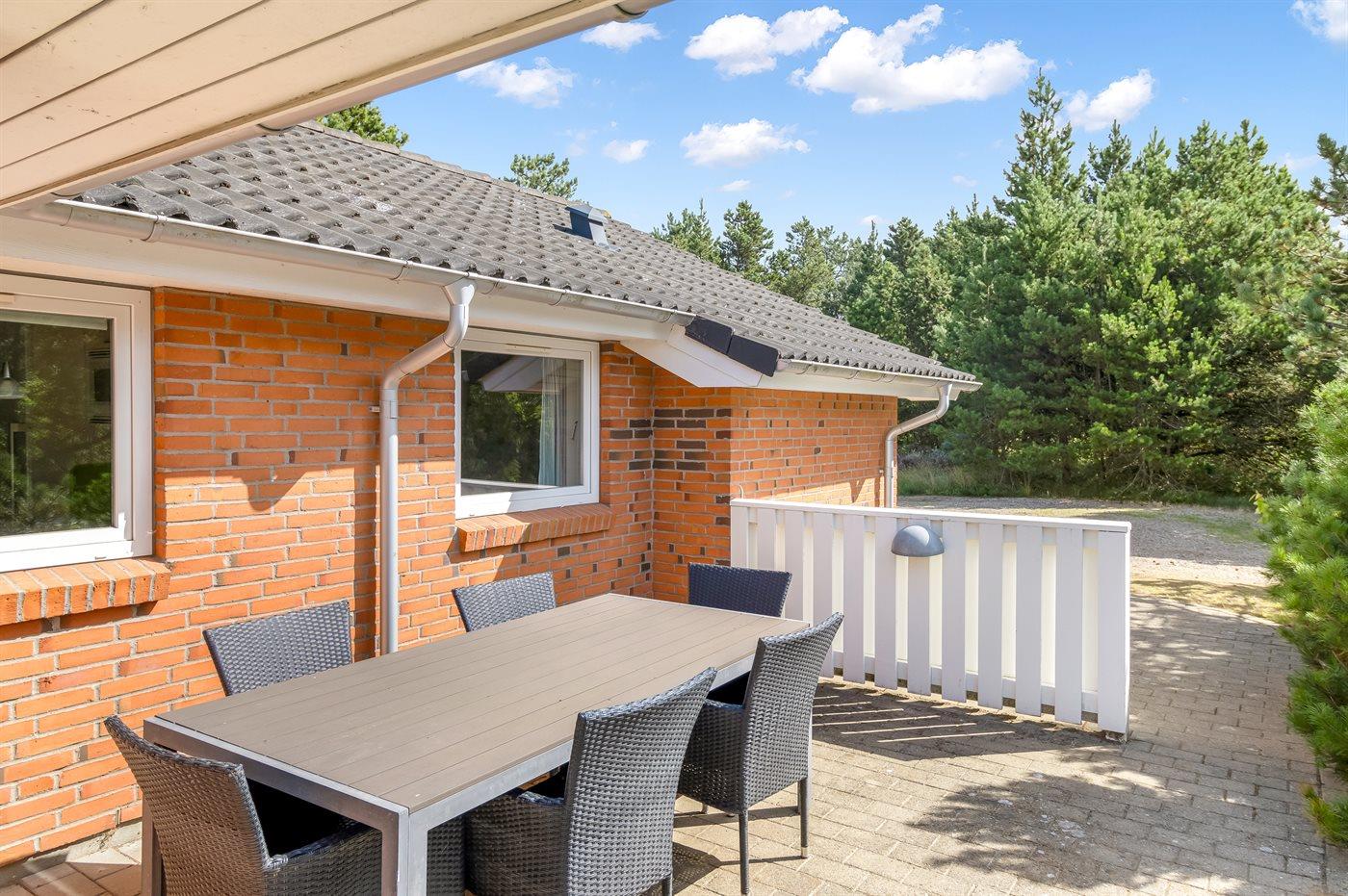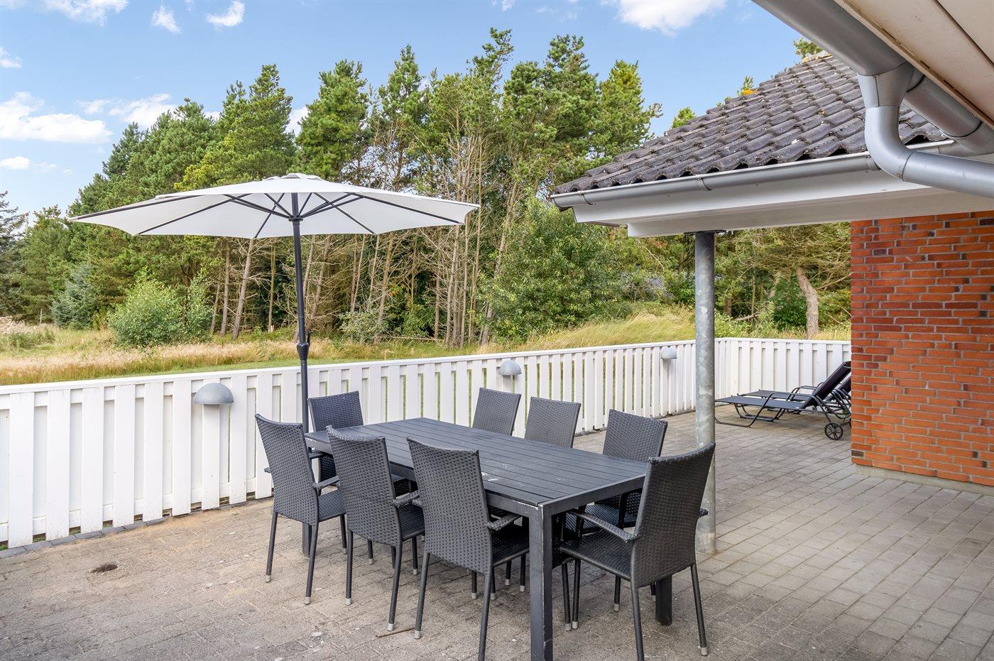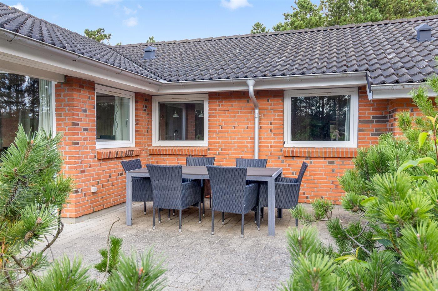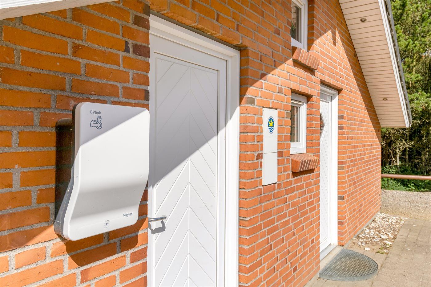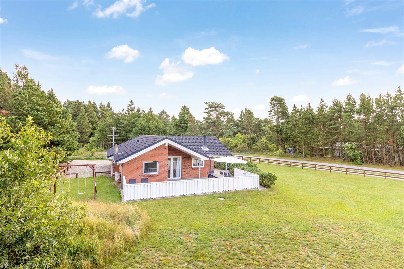 Ferieboligen er beliggende på en 2602 m² stor naturgrund. Der er 1800 m til havet. Nærmeste forretning er beliggende i en afstand af 1300 m. Der er en golfbane i en afstand af 50 m. Til ferieboligen hører åbent terrasseareal. Desuden er der overdækket terrasse. Der er redskabsrum. Gynge. Der er installeret stik til opladning af elbil. Parkering ved ferieboligen.