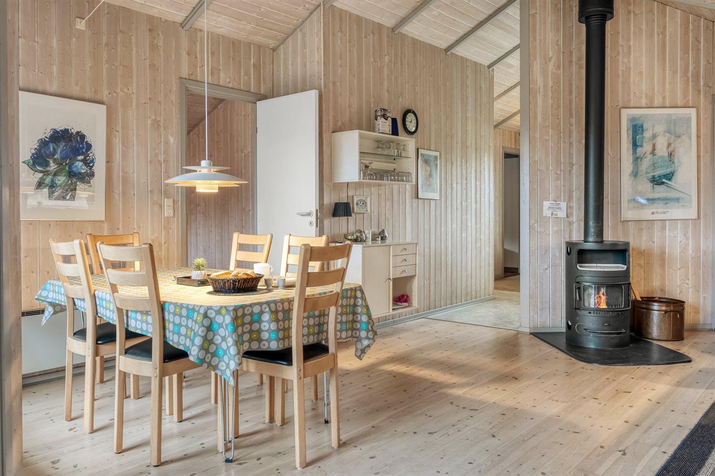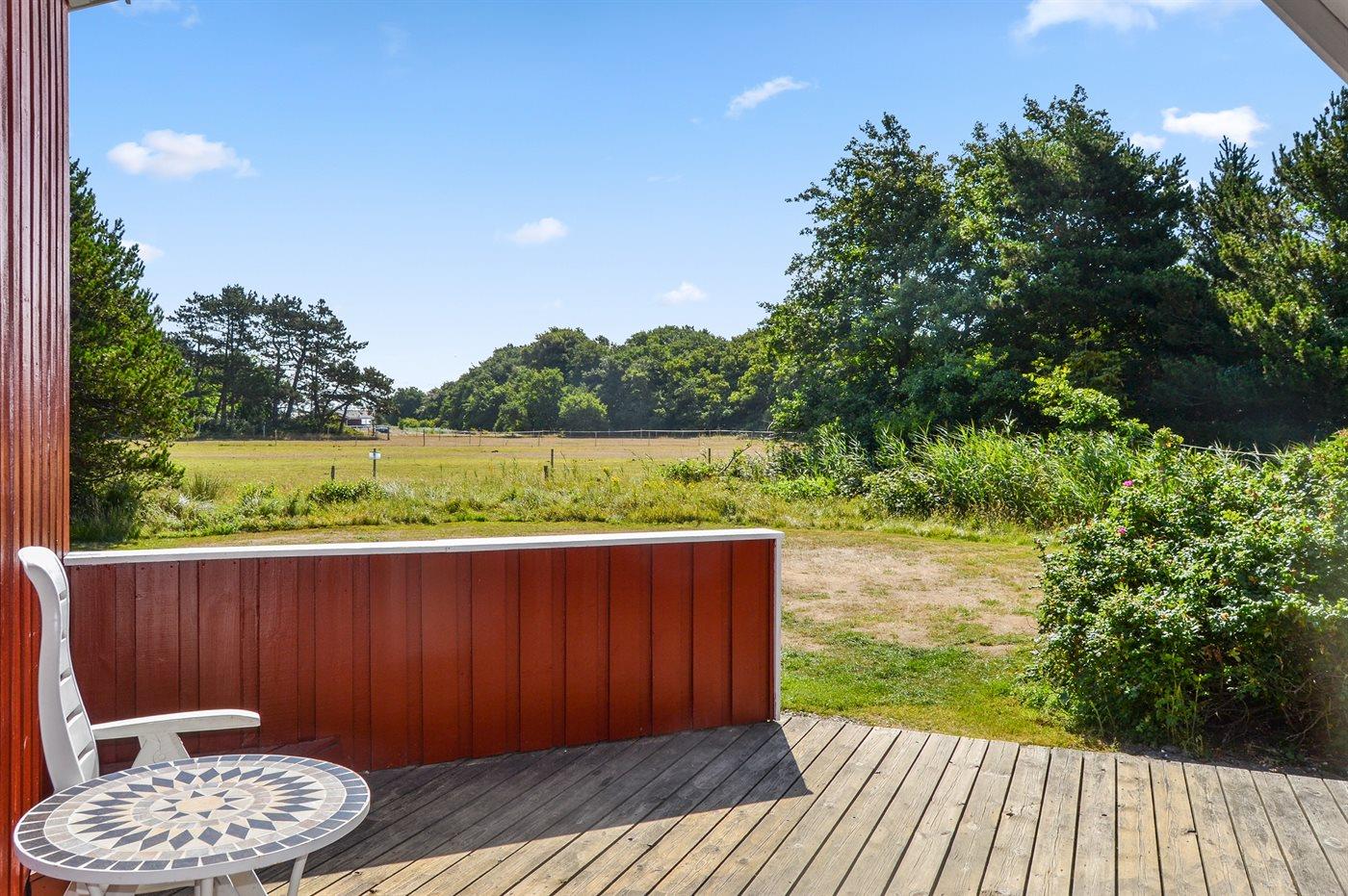 Flot sommerhus i træ, bygget i 1996 og renoveret i 2004, beliggende på en naturgrund - kun 200 m fra vadehavet. Til huset hører 2 terrasser, såvel åben som overdækket, med havemøbler. Fra den ene er der udsigt til den flotte kirke og fra den anden over Vadehavet. Indvendig er vægge og lofter holdt i lyse farver. Dejligt badeværelse med opvarmet klinkegulv, bruseniche, vaskemaskine, 2-pers. spa samt direkte adgang til husets sauna. Desuden gæstetoilet. Det pæne, lyse køkken er kombineret med opholdsstuen og bl.a. udstyret med opvaskemaskine, mikrobølgeovn og fryser. Den store og pænt møblerede opholdsstue indeholder brændeovn, stereoanlæg med CD-afspiller, DVD-afspiller og 65” TV med parabolantenne. Huset er indrettet med 4 soverum; 3 med dobbeltseng og 1 med 2 enkeltsenge. Af yderligere udstyr kan gratis, trådløs internetforbindelse (computer skal medbringes), barneseng samt høj barnestol nævnes og der er installeret energibesparende varmepumpe. Sandkasse og gynge på grunden. Til huset hører endvidere et praktisk redskabsrum.