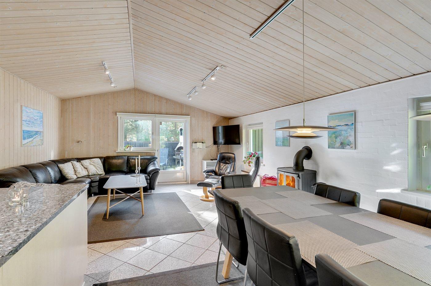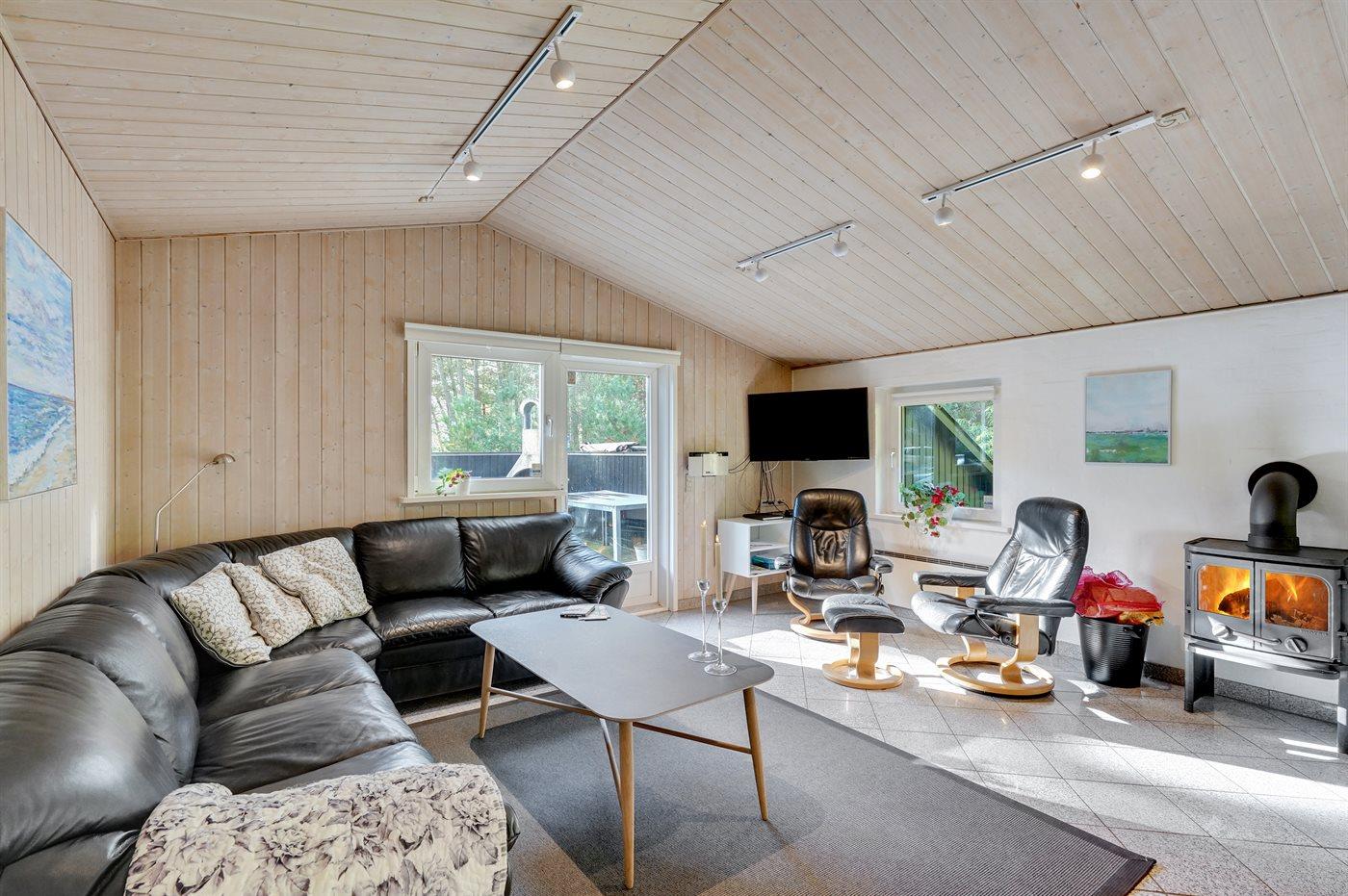 Dette pragtfulde sommerhus i træ, bygget i 1999, ligger på en stor, ugeneret naturgrund. Til huset hører en dejlig, lukket og delvist overdækket terrasse med havemøbler. 2 dejlige, store badeværelser med bruser og gulvvarme. Det ene er desuden udstyret med 2-pers. spa samt direkte adgang til sauna, og i det andet forefindes vaskemaskine og tørretumbler. Lyst køkken med bl.a. fryser, opvaskemaskine og mikrobølgeovn. Den hyggelige opholdsstue er indrettet med kvalitetsmøbler samt brændeovn, TV med parabolantenne, DVD-afspiller og stereoanlæg med CD-afspiller. Sovepladserne er fordelt på 4 soveværelser; 2 med dobbeltseng, TV og DVD-afspiller samt 2 med hver 2 enkeltsenge. Nyt, dejligt multimedierum (2008) med gratis trådløs internetforbindelse (egen computer skal medbringes), fladskærms-TV med parabol og Nintendo Wii samt DVD-afspiller. Værdiboks forefindes. Til de små feriegæster er der høj barnestol, sandkasse, gynge og legehus til rådighed. Se også hus 29-2113.