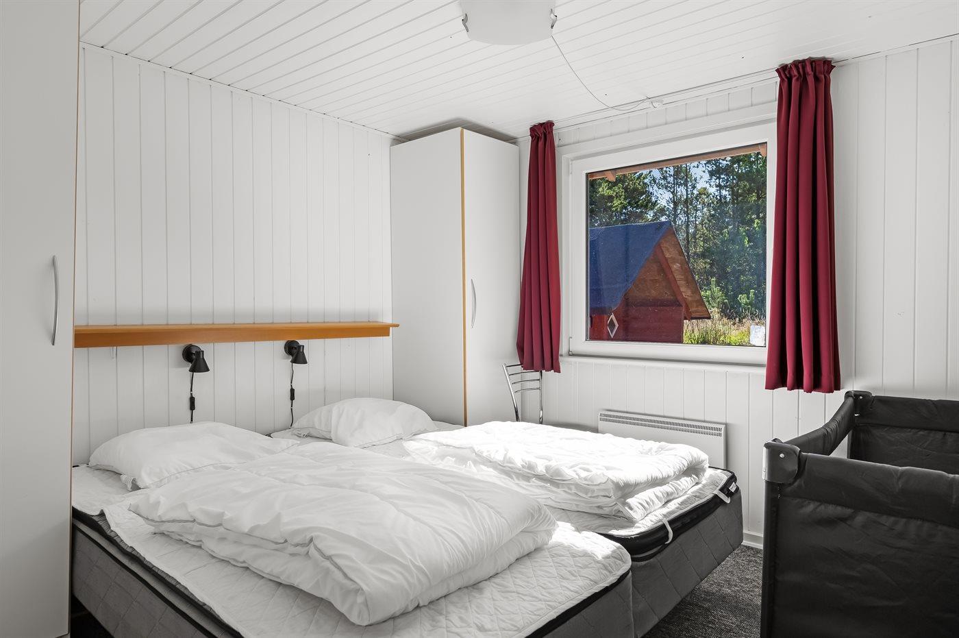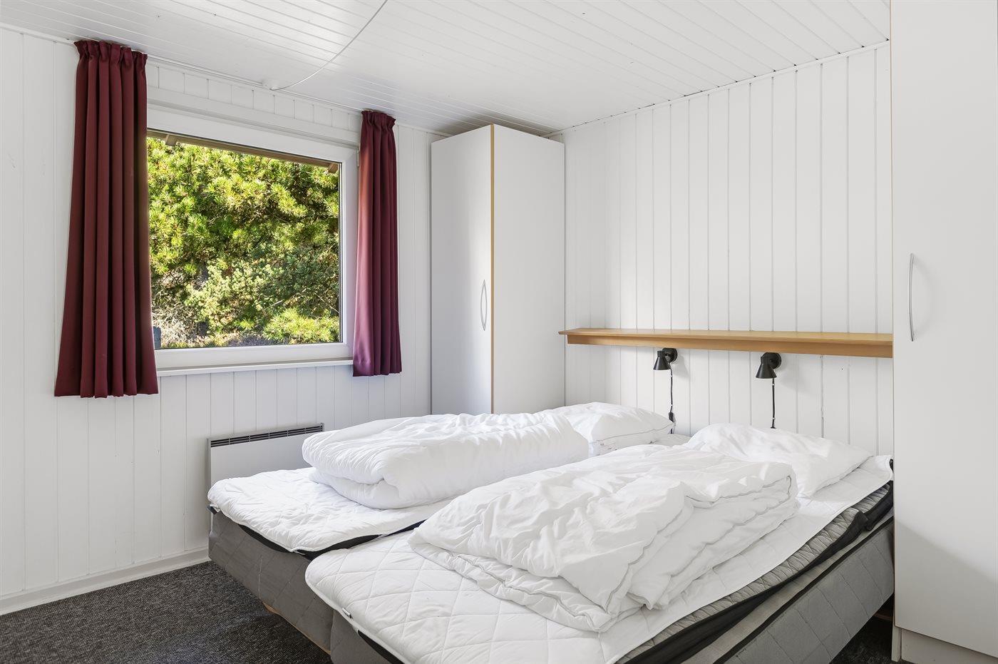 Der er i alt 4 soveværelser. Sovepladserne fordeler sig på: 6 sovepladser i dobbeltsenge. 2 sovepladser i enkeltsenge. Derudover er der 1 stk. barneseng.