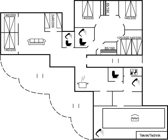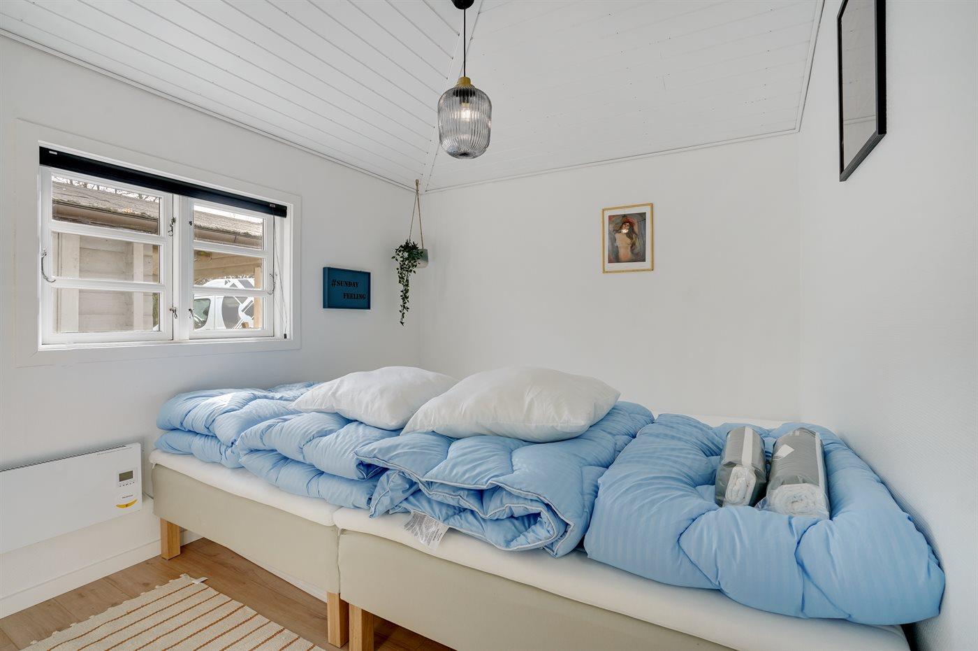 Der er i alt 8 soveværelser. Sovepladserne fordeler sig på: 10 sovepladser i dobbeltsenge. 2 sovepladser i enkeltsenge. 4 sovepladser i køjesenge. Derudover er der 1 stk. barneseng.