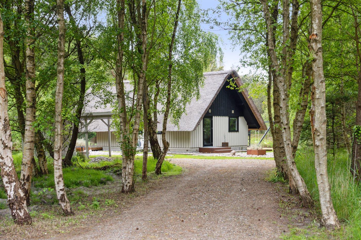 Ferieboligen er beliggende på en 2900 m² stor naturgrund. Der er 1200 m til havet. Nærmeste forretning er beliggende i en afstand af 2500 m. Der er en golfbane i en afstand af 1500 m. Til ferieboligen hører 36 m² terrasseareal. Desuden er der 12 m² overdækket terrasse. Legetårn med gynge. Grill til rådighed. Parkering ved ferieboligen.