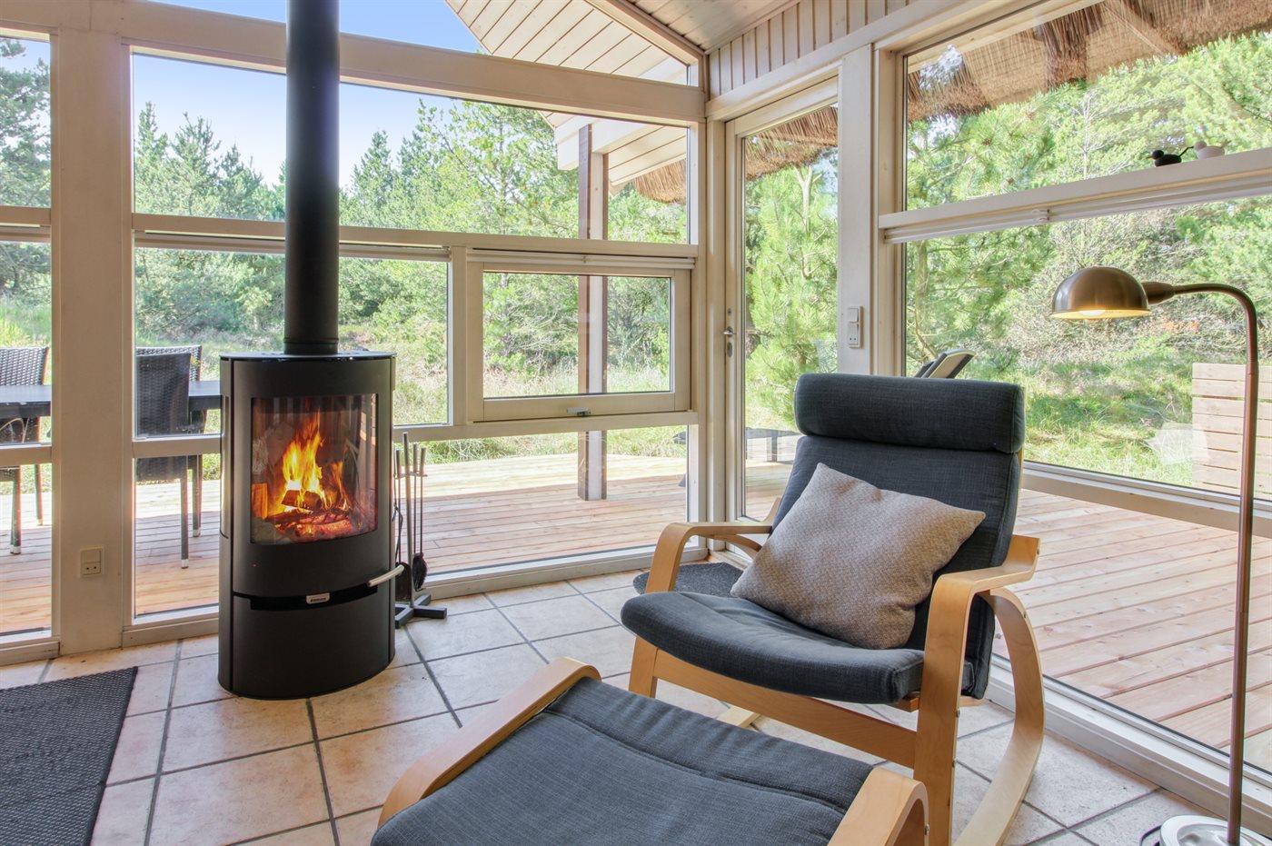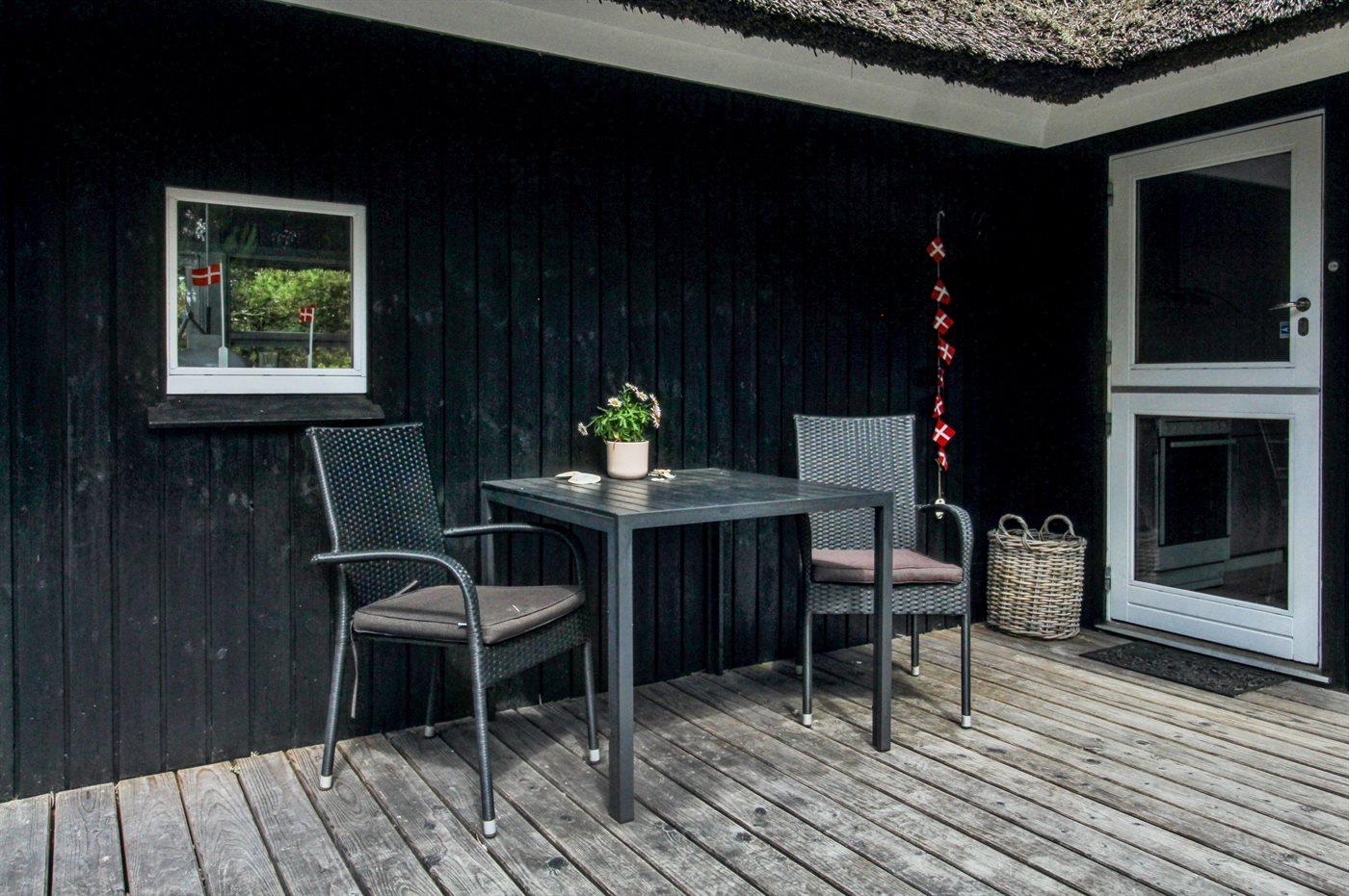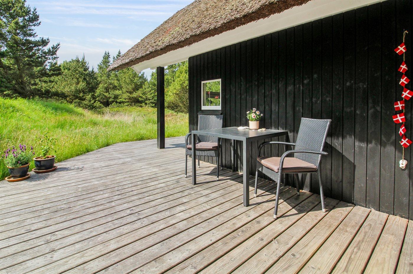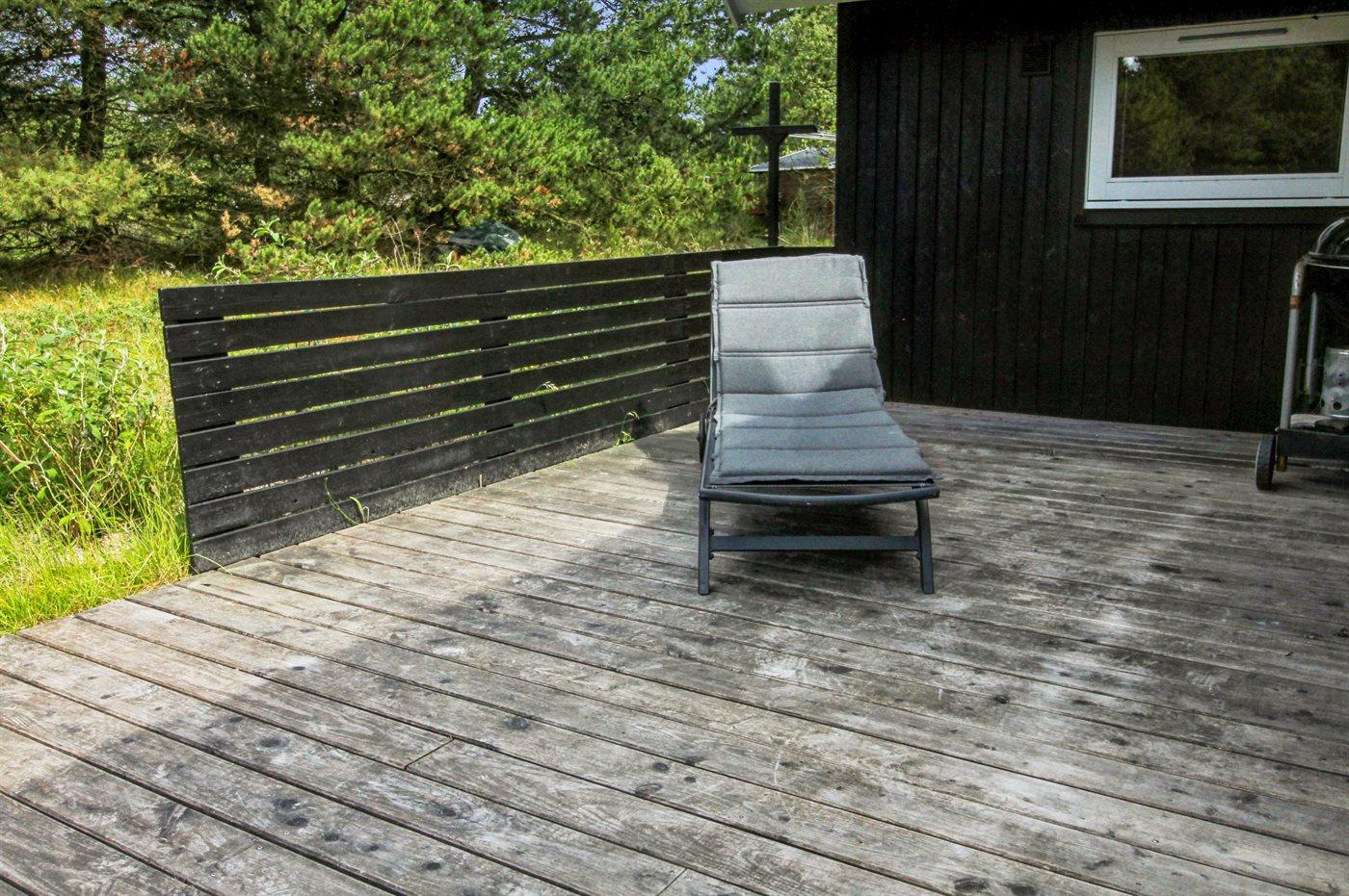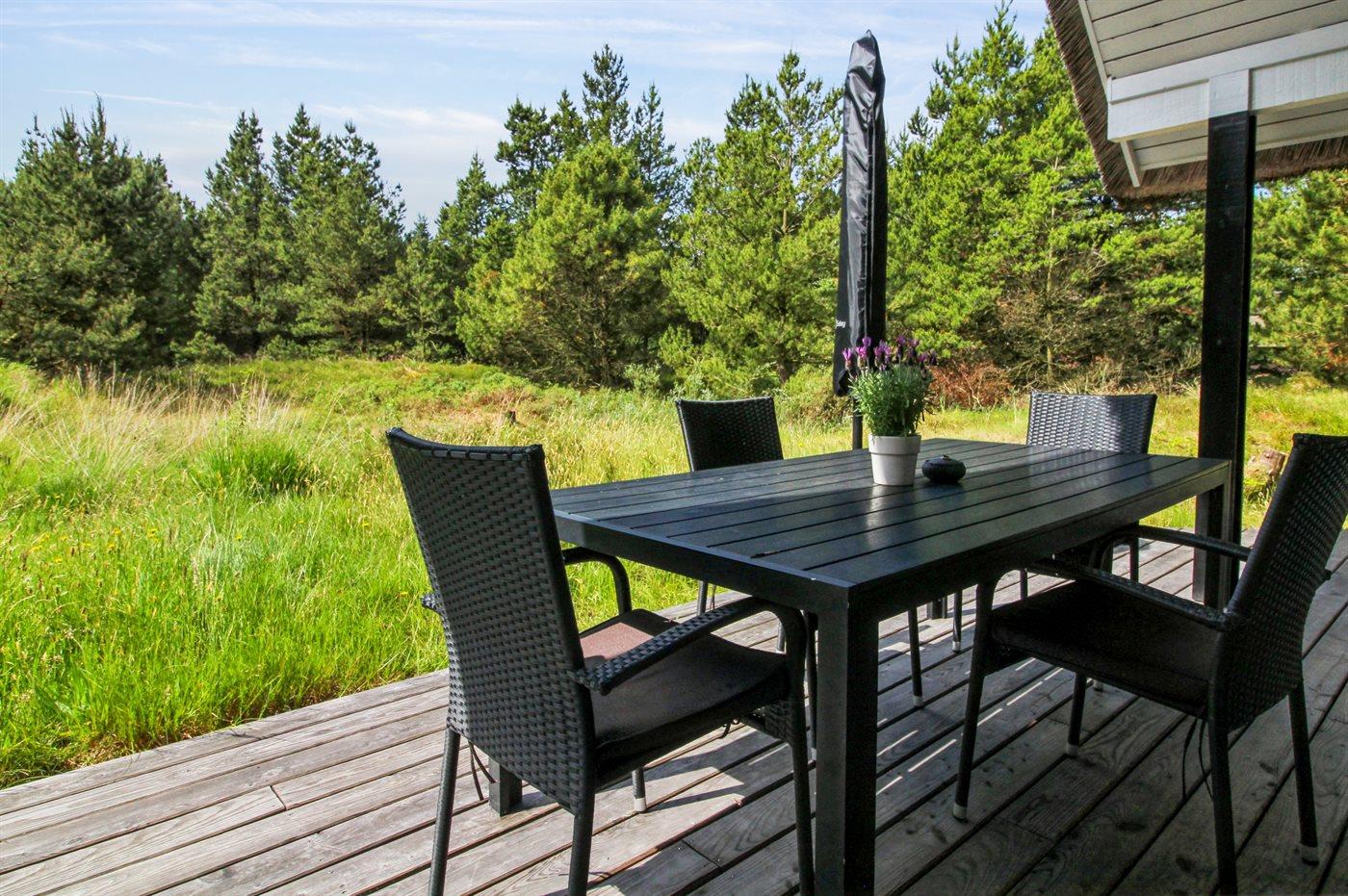 Ferieboligen er beliggende på en 2600 m² stor naturgrund. Der er 1100 m til havet. Der er 2300 m til Vadehavet. Nærmeste forretning er beliggende i en afstand af 2100 m. Der er en golfbane i en afstand af 1800 m. Til ferieboligen hører 35 m² terrasseareal. Desuden er der 10 m² overdækket terrasse. Gynge. Sandkasse. Parkering ved ferieboligen.