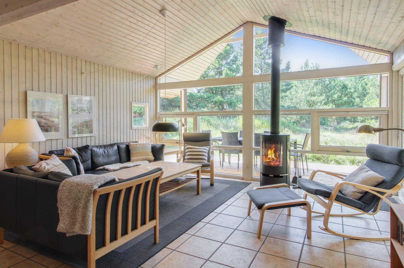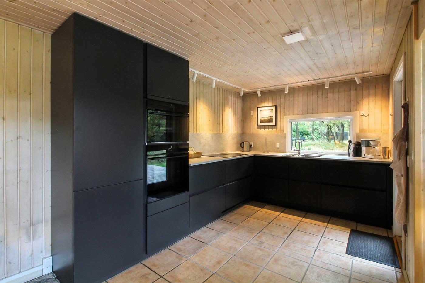 Pænt sommerhus på stor naturgrund nær strand med sauna, brændeovn og moderne køkken.