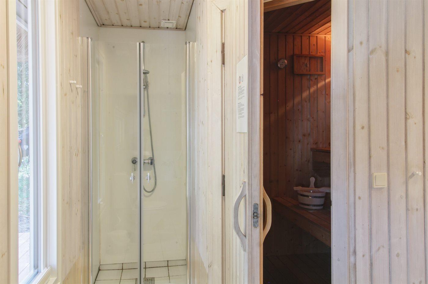 Der er 1 badeværelse med bruseniche og 2 toiletter, heraf 1 gæstetoilet. Der er gulvvarme på 1 badeværelse. I saunaen er der mulighed for afslapning.