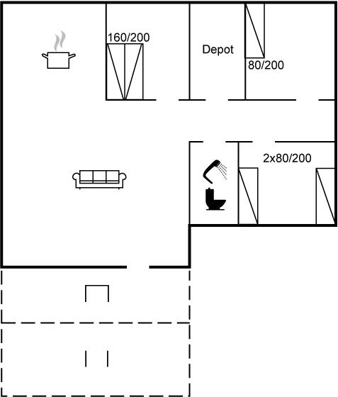 Der er i alt 3 soveværelser. Sovepladserne fordeler sig på: 2 sovepladser i dobbeltseng. 3 sovepladser i enkeltsenge.