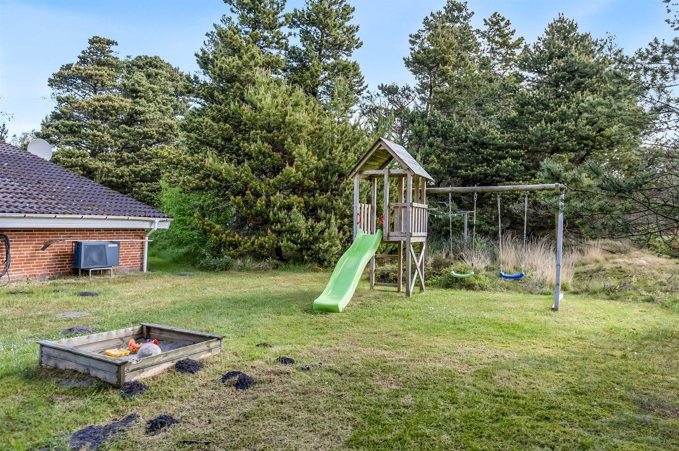 Ferieboligen er beliggende på en 2945 m² stor naturgrund. Der er 1000 m til havet. Nærmeste forretning er beliggende i en afstand af 2800 m. Der er en golfbane i en afstand af 275 m. Til ferieboligen hører 50 m² terrasseareal. Desuden er der 26 m² overdækket terrasse. Der er redskabsrum. Gynge. Sandkasse. Trampolin. Parkering ved ferieboligen.