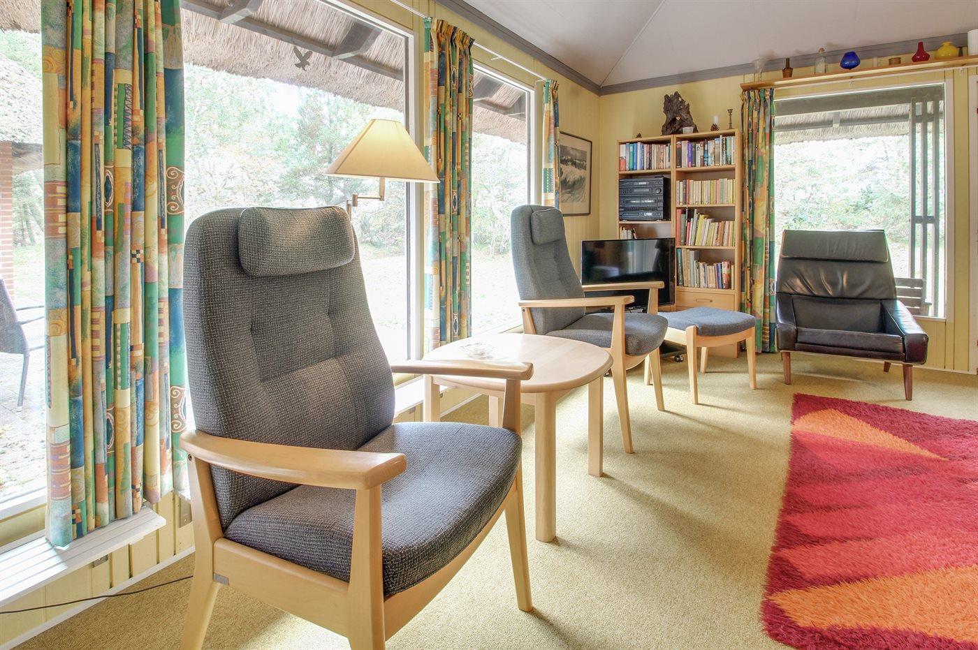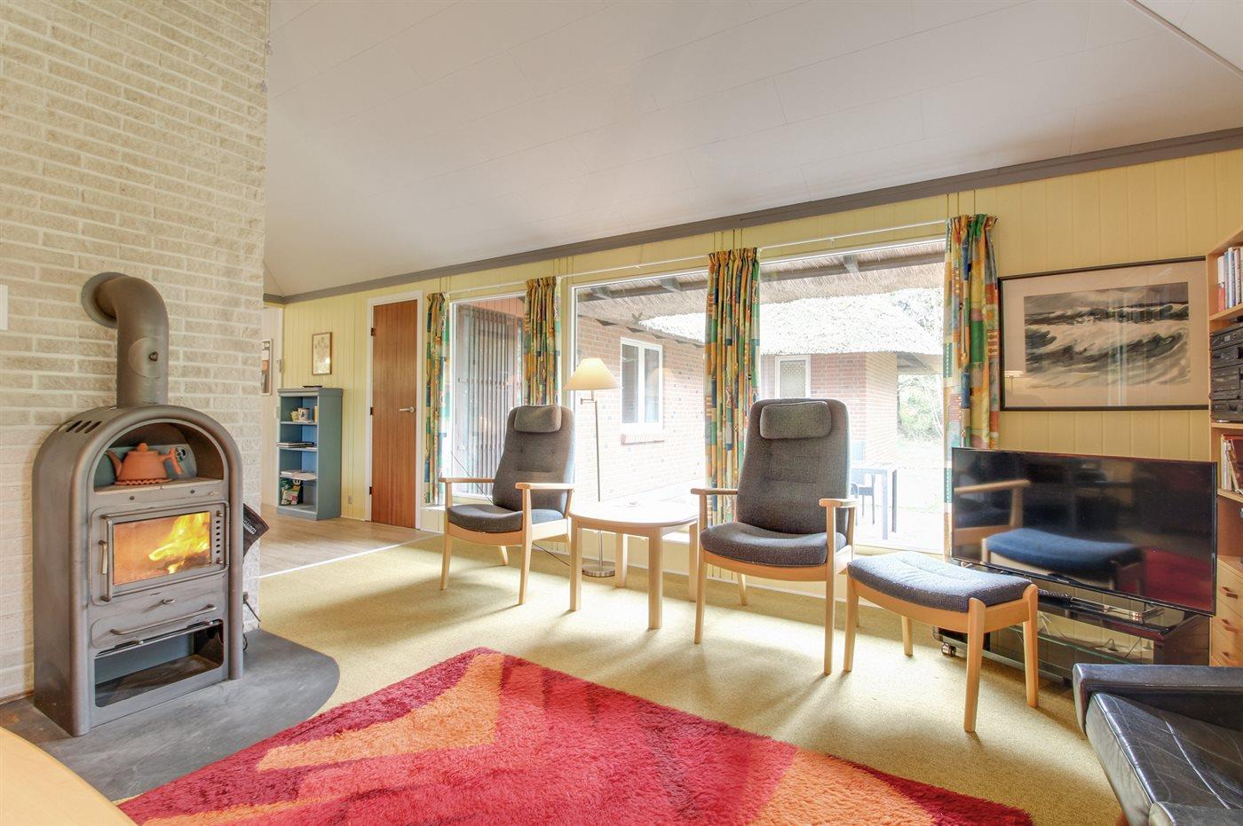 Sommerhus med stråtag beliggende på en ugeneret, børnevenlig naturgrund i idylliske omgivelser. Til huset hører en dejlig, delvist overdækket terrasse med havemøbler. Indvendigt er der delvis tæppebelagte gulve.
