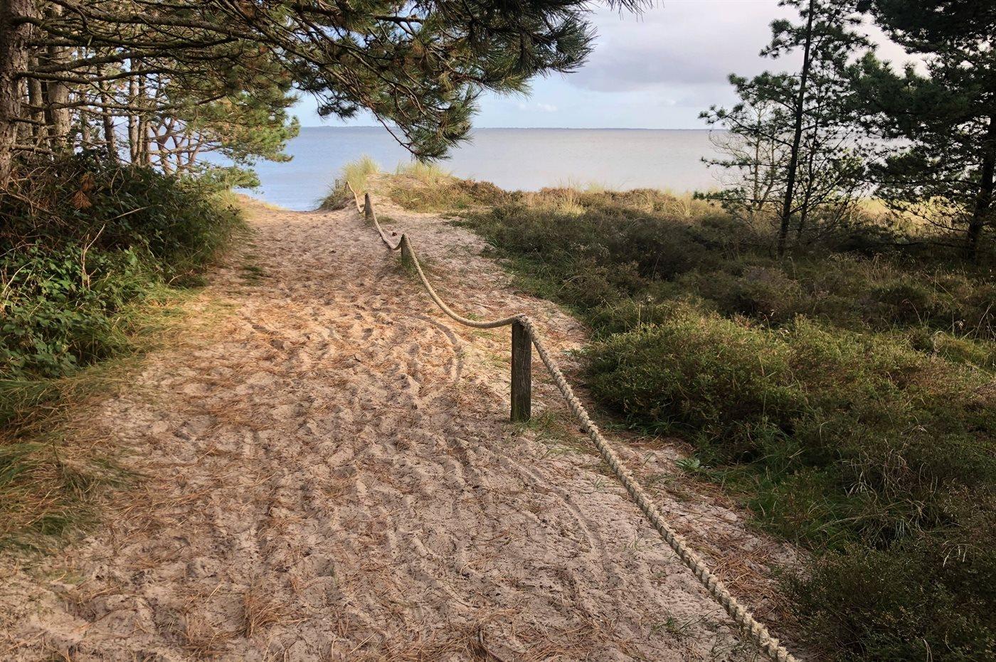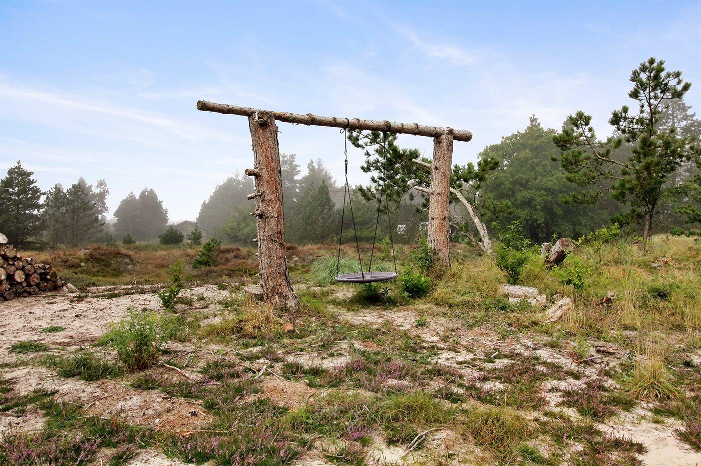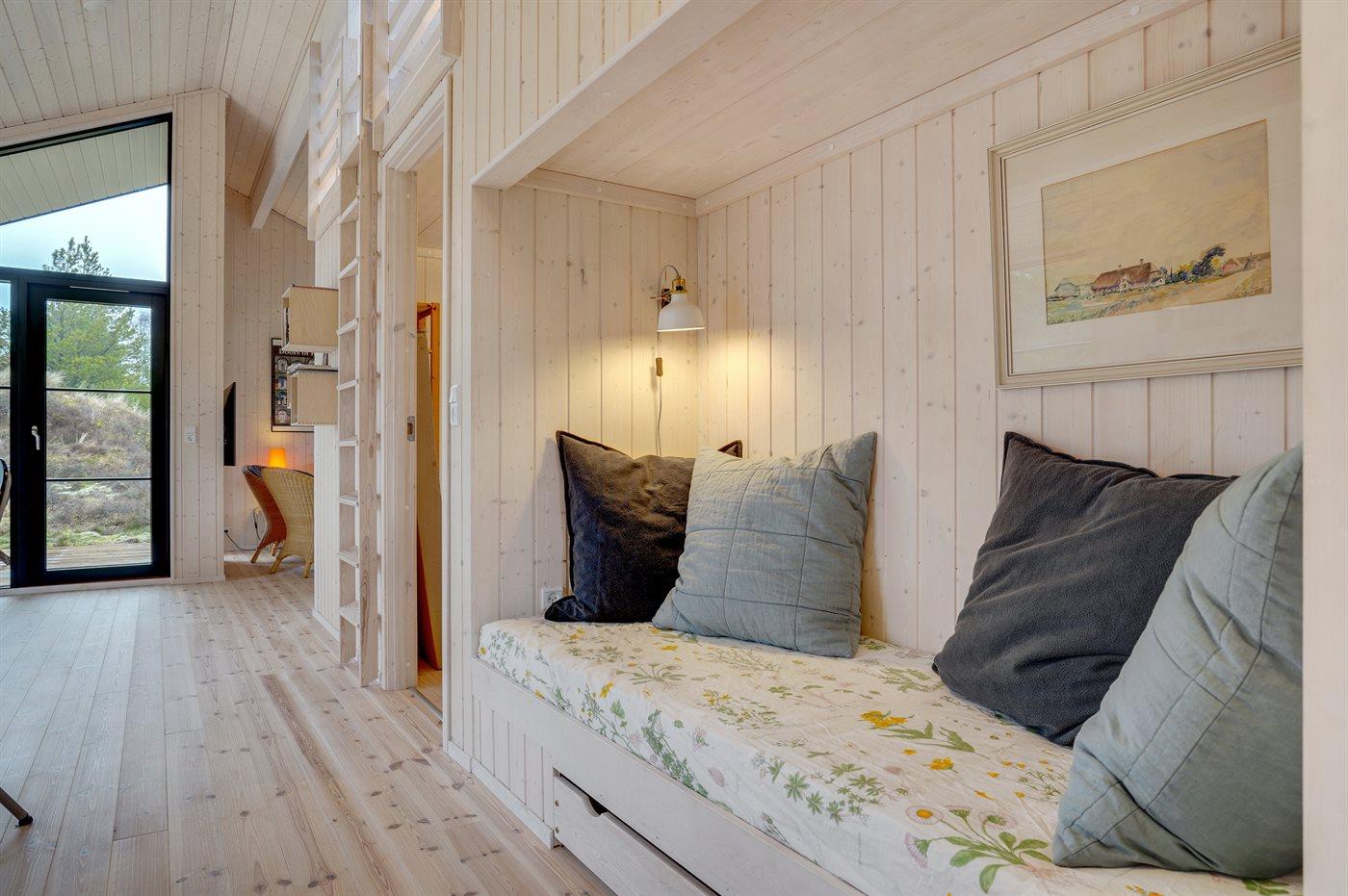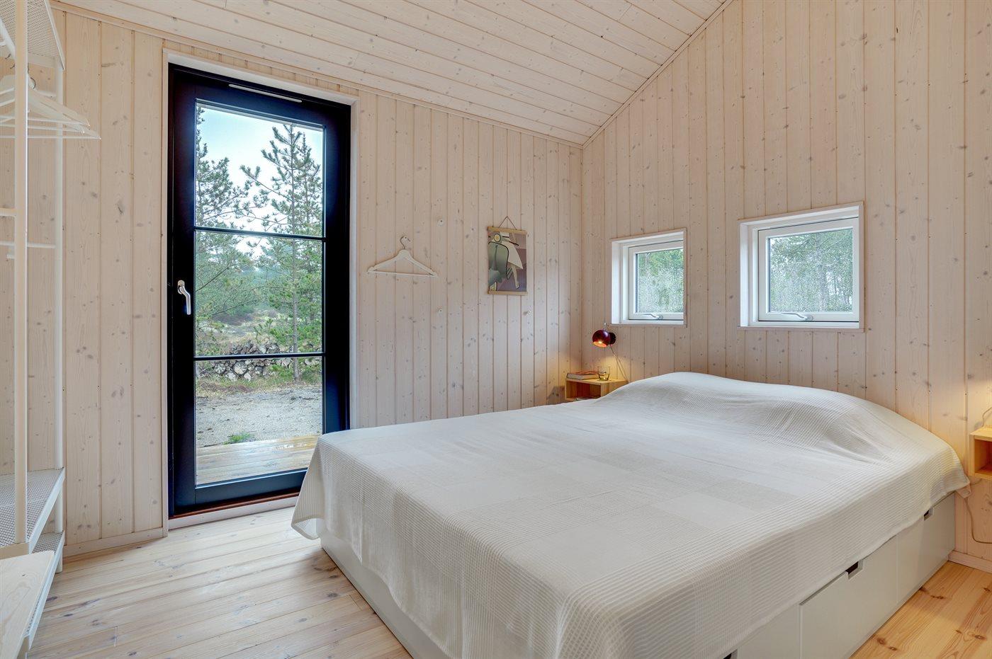 Dette nybyggede sommerhus på 77 m2 fra 2019 på en 2500 m2 stor naturgrund har en særdeles charmerende og personlig indretning, hvor der er kælet for detaljerne. Herunder kan nævnes hyggelig alkove i køkken-alrum, egen udgang fra soveværelse, udebruser bag afskærmning med direkte adgang fra badeværelse, adgang til terrasse fra køkken, velindrettet og lys hems med ovenlysvindue samt stor træterrasse vendt mod den kuperede og private del af den store lyngbevoksede naturgrund. Til børnene er der både gynge og sandkasse samt gode klatretræer. Der er også en hængekøje mellem træerne. Af og til kan man i de stille timer få besøg af rådyr på grunden. Der er grill til rådighed, og naturligvis parkering ved huset. Fra grunden er der via flere stier (se billeder) fin adgang til Vadehavet (kun 400 m.), hvor der netop her er hvid sandstrand. Herfra er der rigtig gode muligheder for at udforske vadehavets rige dyreliv, herunder fange krabber, muslinger (og østers) mv.
