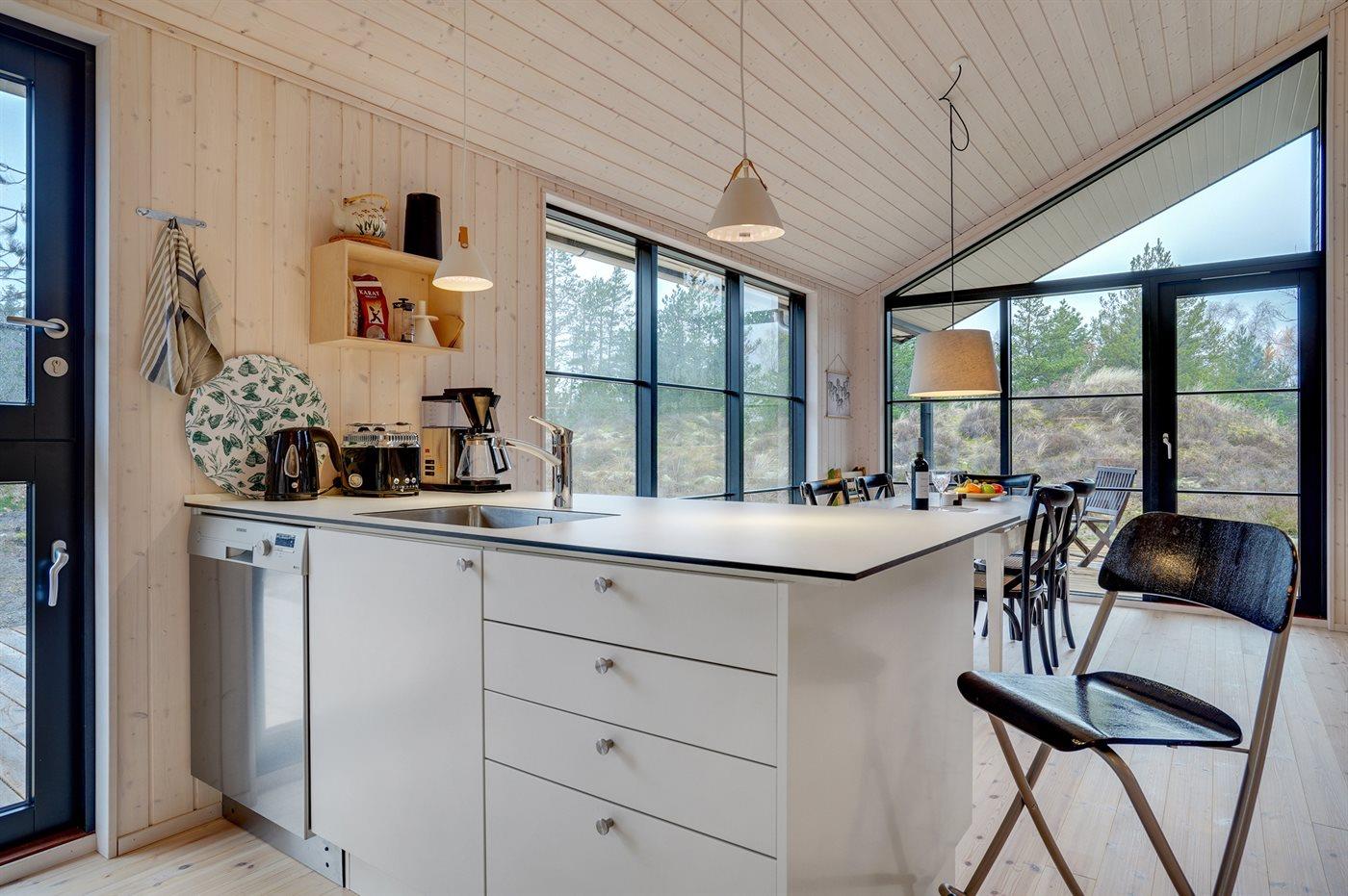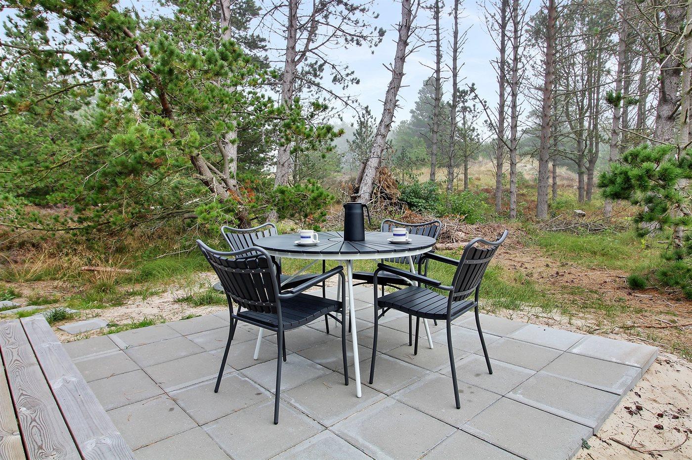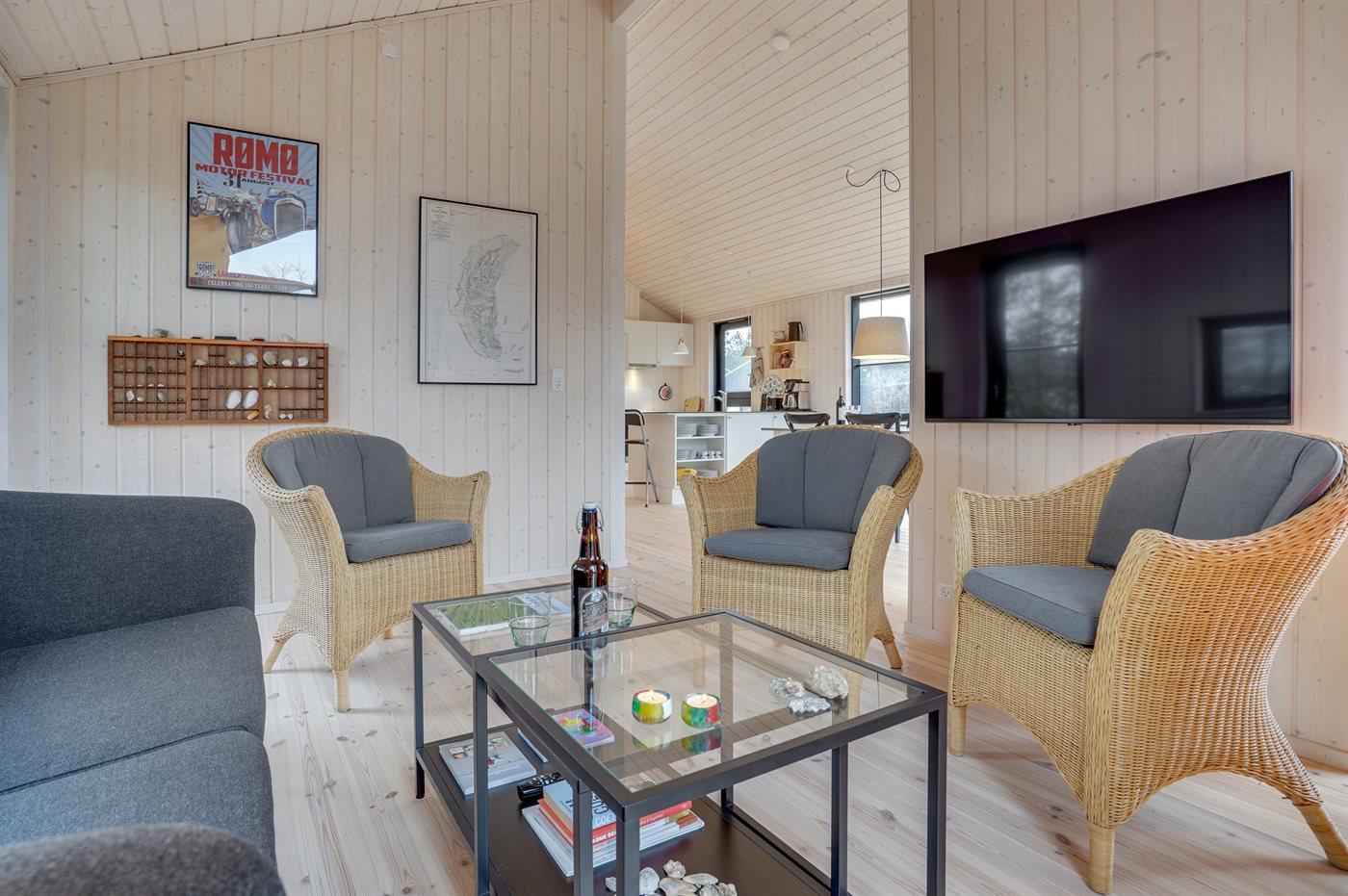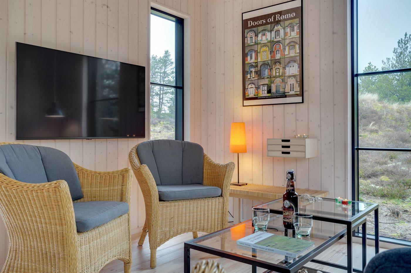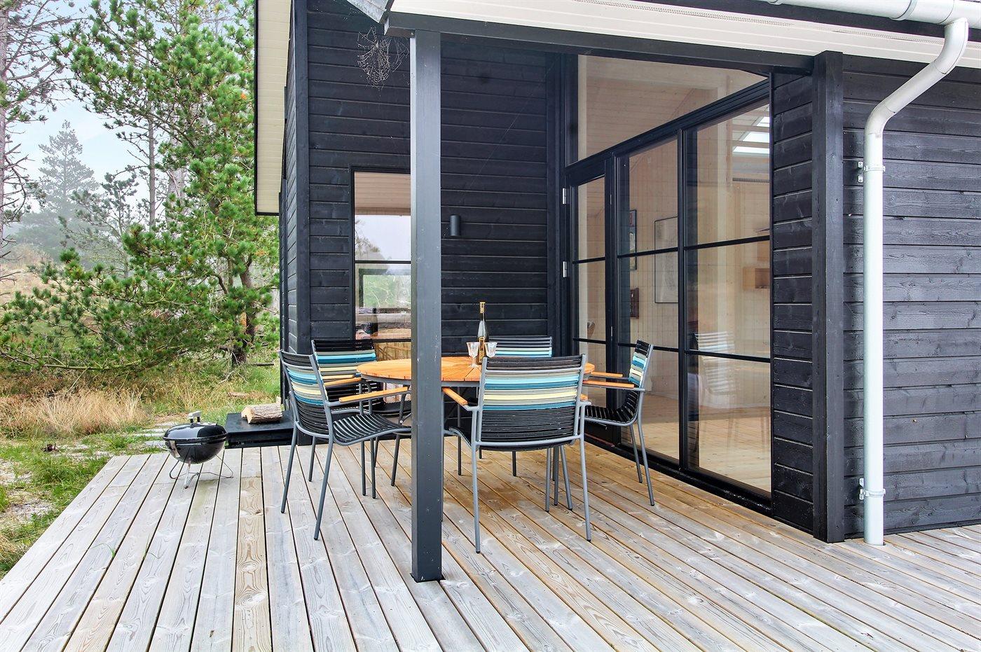 Dette nybyggede sommerhus på 77 m2 fra 2019 på en 2500 m2 stor naturgrund har en særdeles charmerende og personlig indretning, hvor der er kælet for detaljerne. Herunder kan nævnes hyggelig alkove i køkken-alrum, egen udgang fra soveværelse, udebruser bag afskærmning med direkte adgang fra badeværelse, adgang til terrasse fra køkken, velindrettet og lys hems med ovenlysvindue samt stor træterrasse vendt mod den kuperede og private del af den store lyngbevoksede naturgrund. Til børnene er der både gynge og sandkasse samt gode klatretræer. Der er også en hængekøje mellem træerne. Af og til kan man i de stille timer få besøg af rådyr på grunden. Der er grill til rådighed, og naturligvis parkering ved huset. Fra grunden er der via flere stier (se billeder) fin adgang til Vadehavet (kun 400 m.), hvor der netop her er hvid sandstrand. Herfra er der rigtig gode muligheder for at udforske vadehavets rige dyreliv, herunder fange krabber, muslinger (og østers) mv.