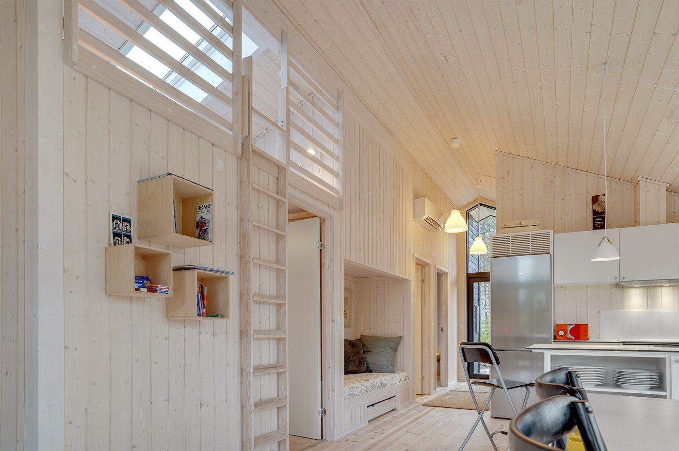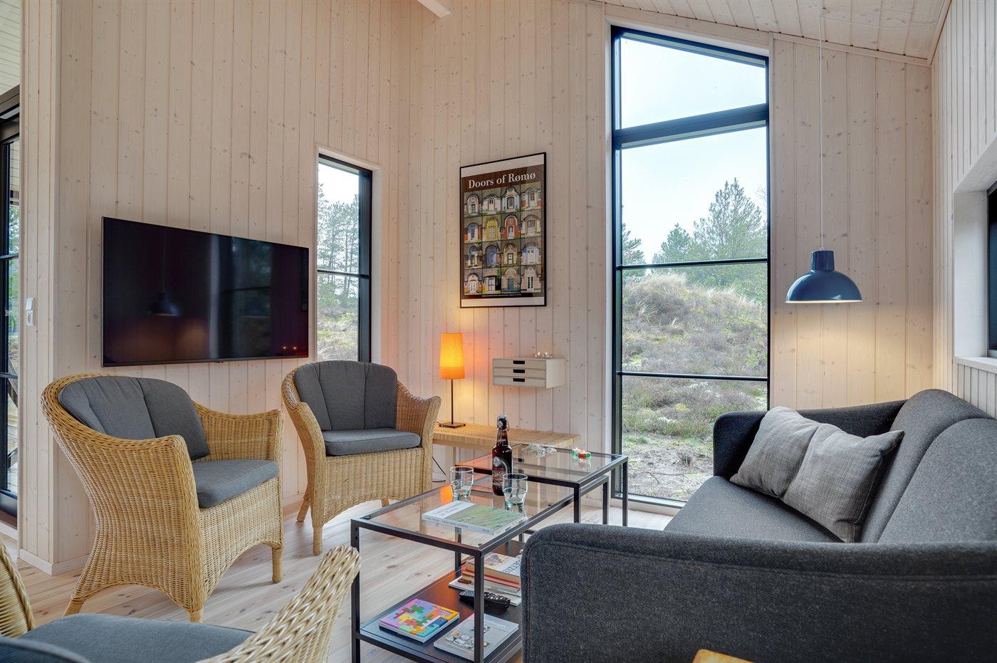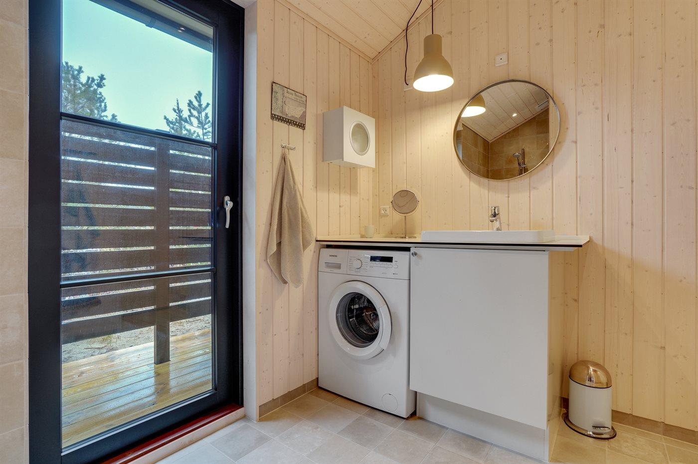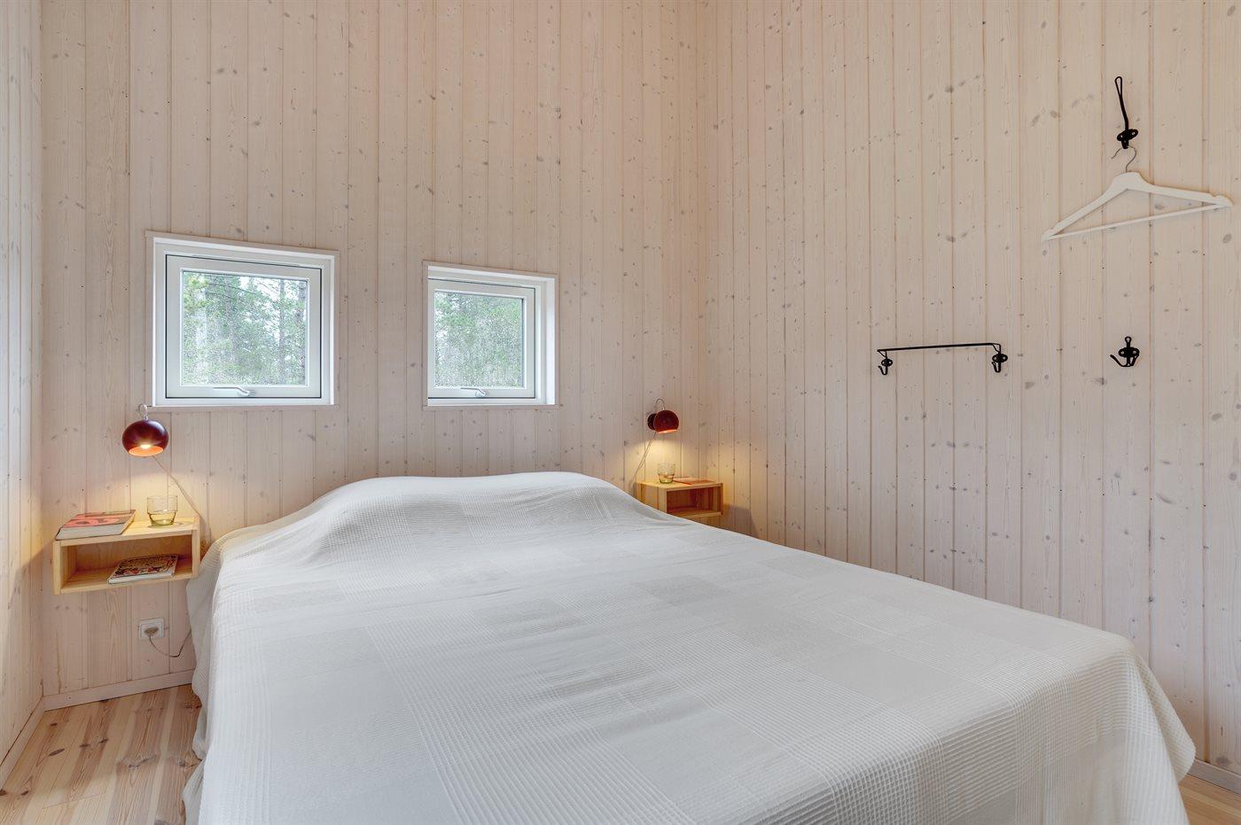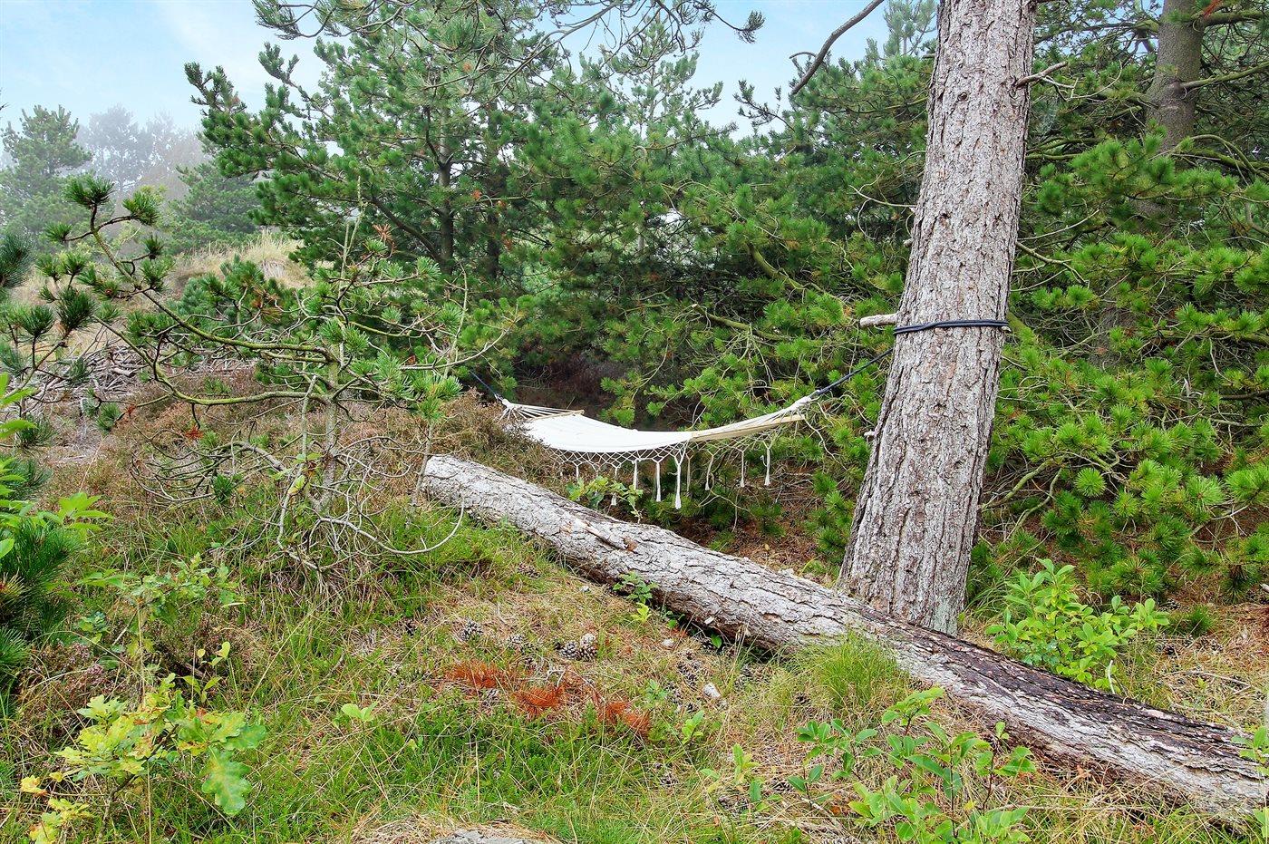 Dette nybyggede sommerhus på 77 m2 fra 2019 på en 2500 m2 stor naturgrund har en særdeles charmerende og personlig indretning, hvor der er kælet for detaljerne. Herunder kan nævnes hyggelig alkove i køkken-alrum, egen udgang fra soveværelse, udebruser bag afskærmning med direkte adgang fra badeværelse, adgang til terrasse fra køkken, velindrettet og lys hems med ovenlysvindue samt stor træterrasse vendt mod den kuperede og private del af den store lyngbevoksede naturgrund. Til børnene er der både gynge og sandkasse samt gode klatretræer. Der er også en hængekøje mellem træerne. Af og til kan man i de stille timer få besøg af rådyr på grunden. Der er grill til rådighed, og naturligvis parkering ved huset. Fra grunden er der via flere stier (se billeder) fin adgang til Vadehavet (kun 400 m.), hvor der netop her er hvid sandstrand. Herfra er der rigtig gode muligheder for at udforske vadehavets rige dyreliv, herunder fange krabber, muslinger (og østers) mv.