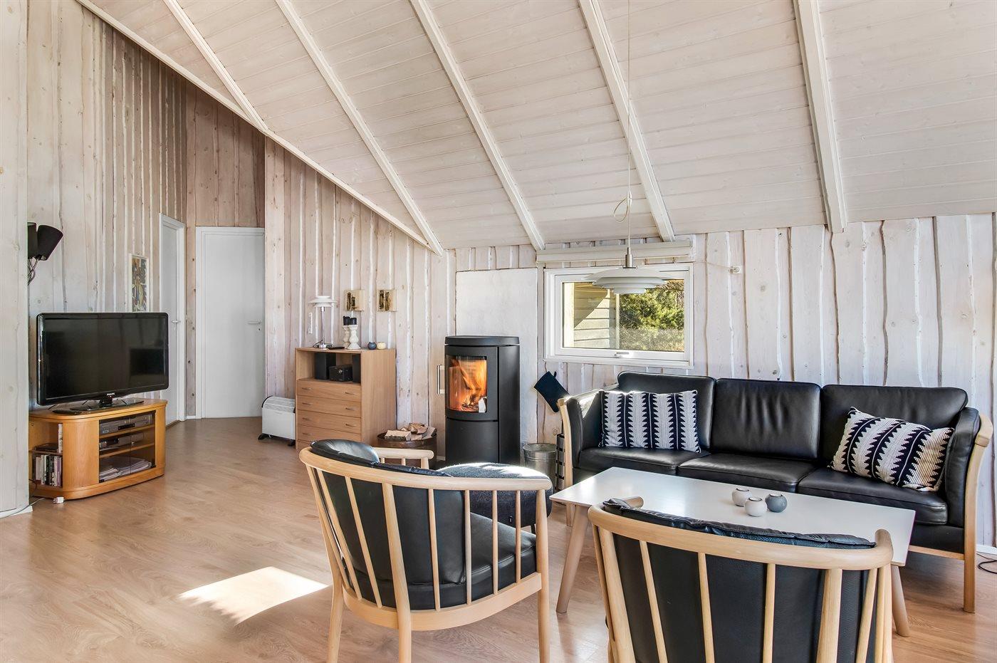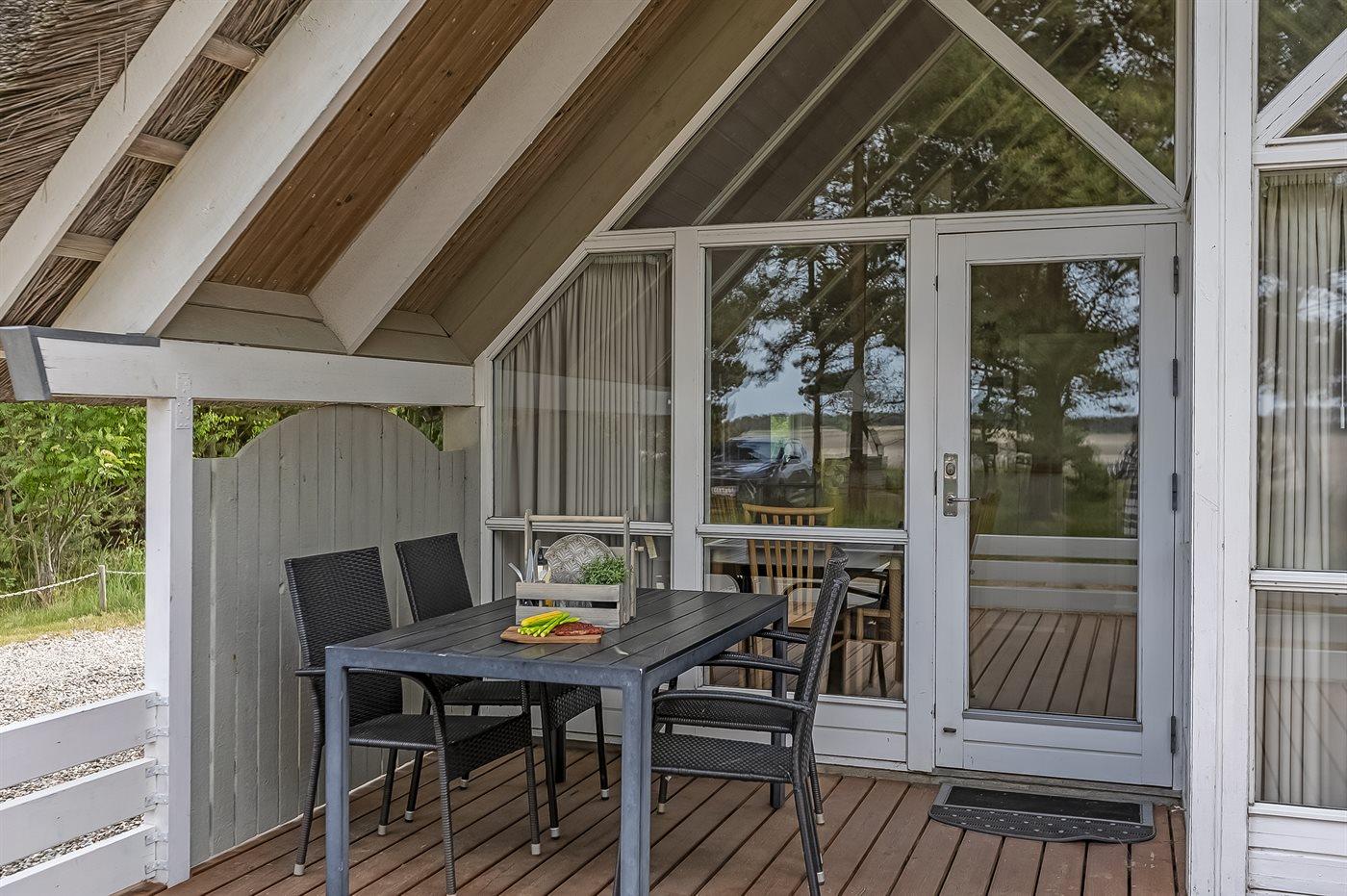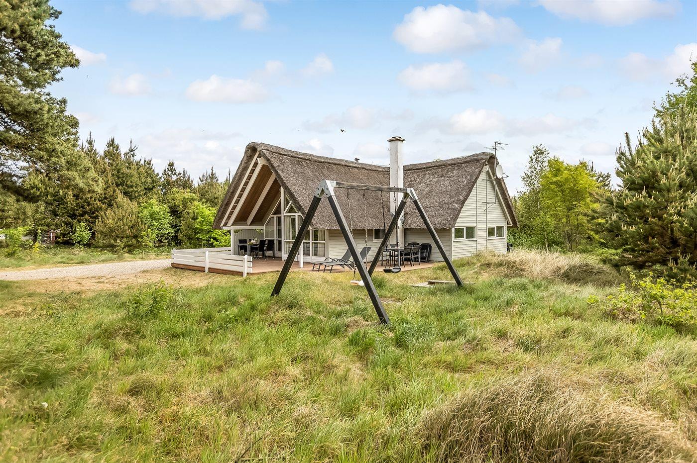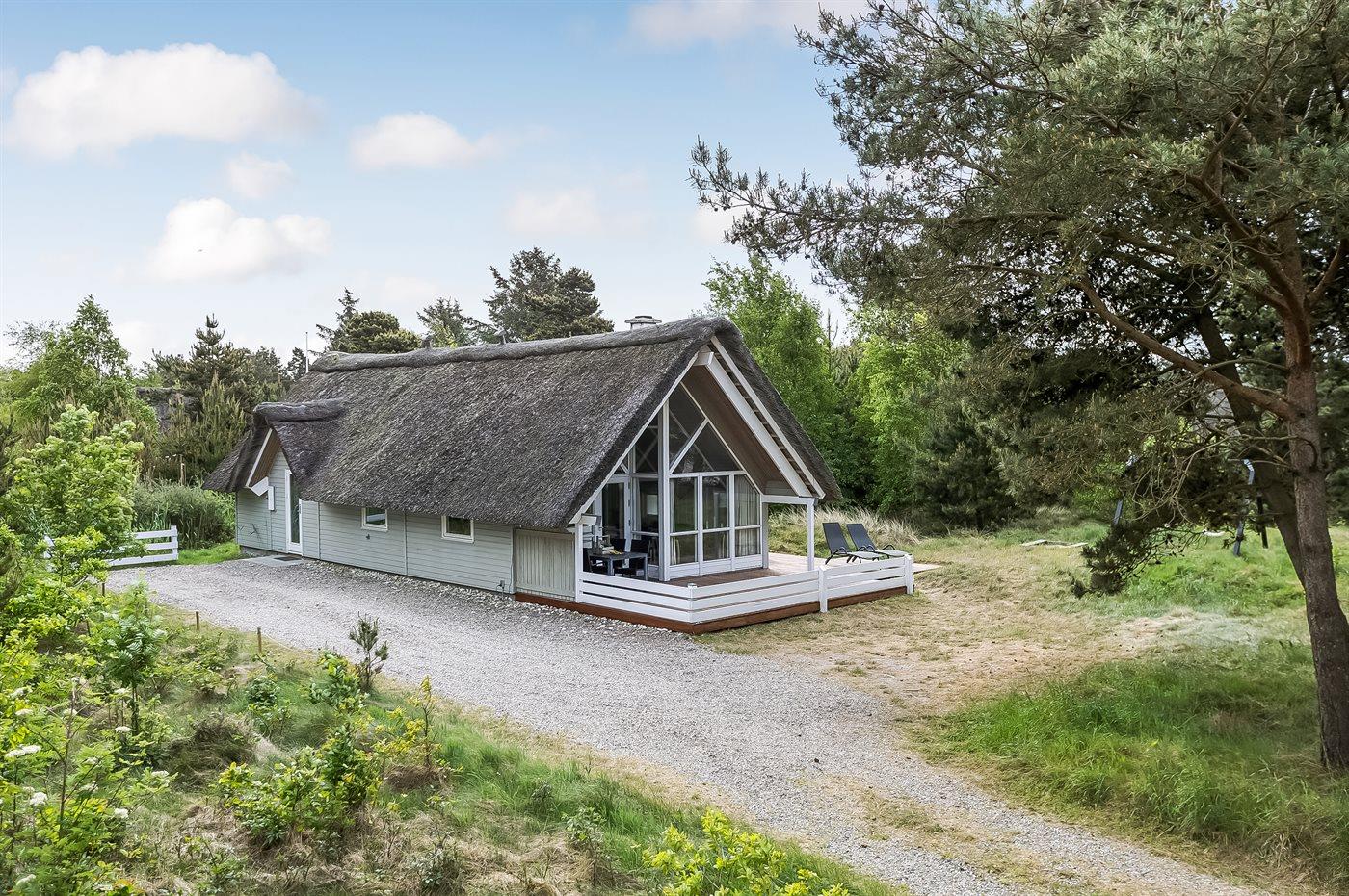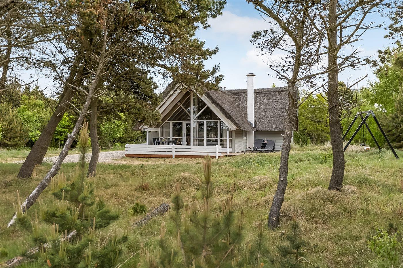 Dette dejlige, stråtækte sommerhus på 98 m2 ligger på en delvis lukket naturgrund ganske nær Sønderstrand, som er kendt for den brede, hvide sandstrand, hvor alle strandaktiviteter er mulige. Huset er meget hyggeligt indrettet med bl.a. trægulve og brændeovn i stuen, hvorfra der er direkte adgang til en stor, delvist overdækket terrasse. Desuden gratis, trådløs ADSL-internetforbindelse (computer medbringes) til rådighed. De fire soveværelser er alle indrettet med dobbeltsenge og der findes et stort badeværelse med spa og adgang til husets sauna. Derudover findes der et gæstetoilet. Sandkasse og gynge på grunden.