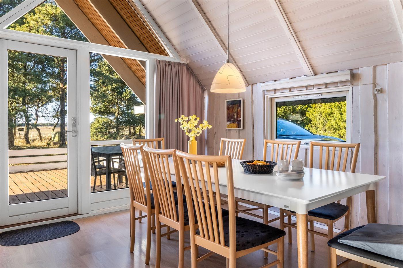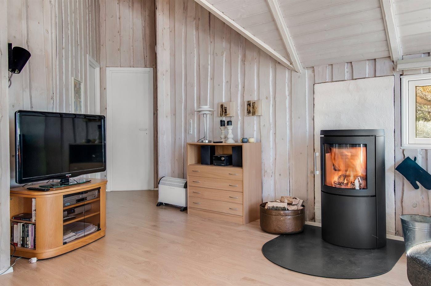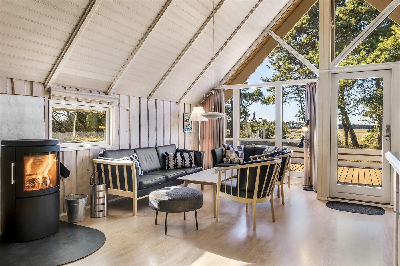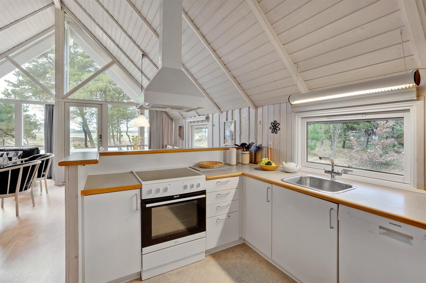 Dette dejlige, stråtækte sommerhus på 98 m2 ligger på en delvis lukket naturgrund ganske nær Sønderstrand, som er kendt for den brede, hvide sandstrand, hvor alle strandaktiviteter er mulige. Huset er meget hyggeligt indrettet med bl.a. trægulve og brændeovn i stuen, hvorfra der er direkte adgang til en stor, delvist overdækket terrasse. Desuden gratis, trådløs ADSL-internetforbindelse (computer medbringes) til rådighed. De fire soveværelser er alle indrettet med dobbeltsenge og der findes et stort badeværelse med spa og adgang til husets sauna. Derudover findes der et gæstetoilet. Sandkasse og gynge på grunden.