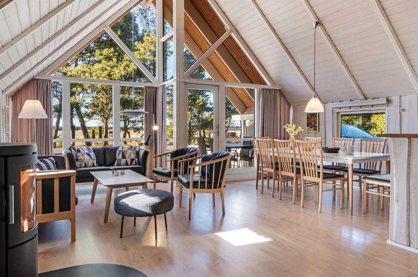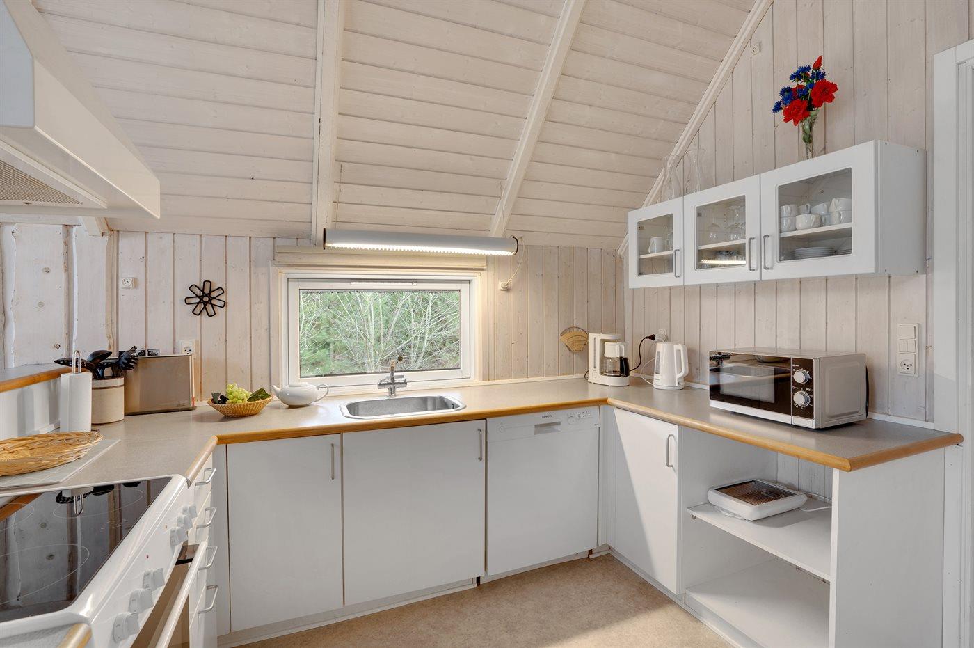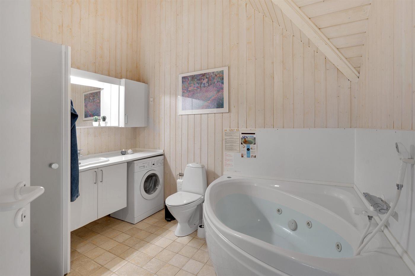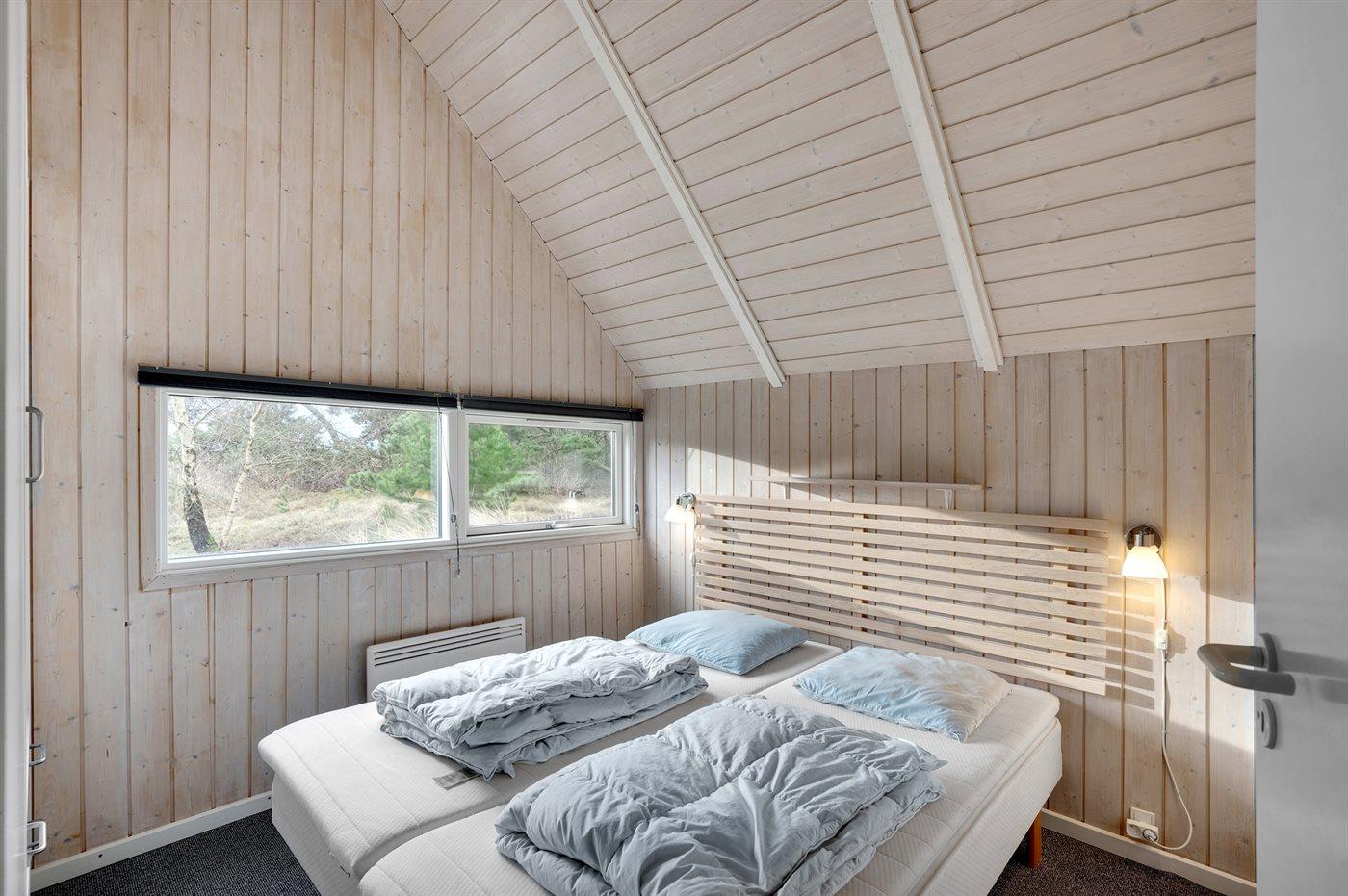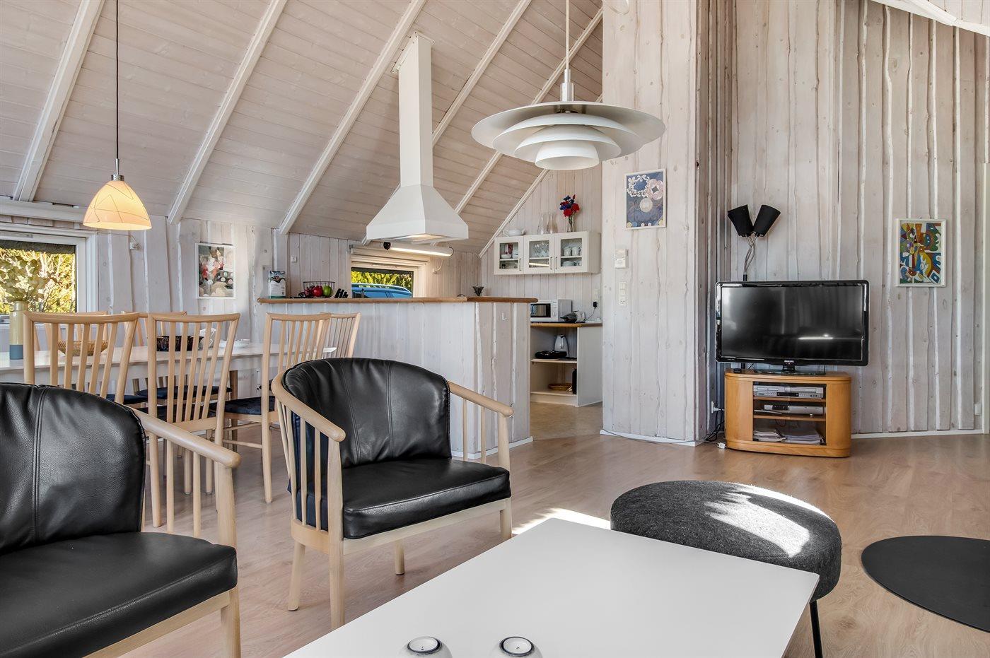 Dette dejlige, stråtækte sommerhus på 98 m2 ligger på en delvis lukket naturgrund ganske nær Sønderstrand, som er kendt for den brede, hvide sandstrand, hvor alle strandaktiviteter er mulige. Huset er meget hyggeligt indrettet med bl.a. trægulve og brændeovn i stuen, hvorfra der er direkte adgang til en stor, delvist overdækket terrasse. Desuden gratis, trådløs ADSL-internetforbindelse (computer medbringes) til rådighed. De fire soveværelser er alle indrettet med dobbeltsenge og der findes et stort badeværelse med spa og adgang til husets sauna. Derudover findes der et gæstetoilet. Sandkasse og gynge på grunden.