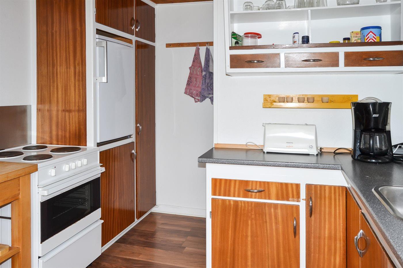 Køkkenet er udstyret med 1 køleskab. Der er 4 elkogeplader, bageovn, mikrobølgeovn.
