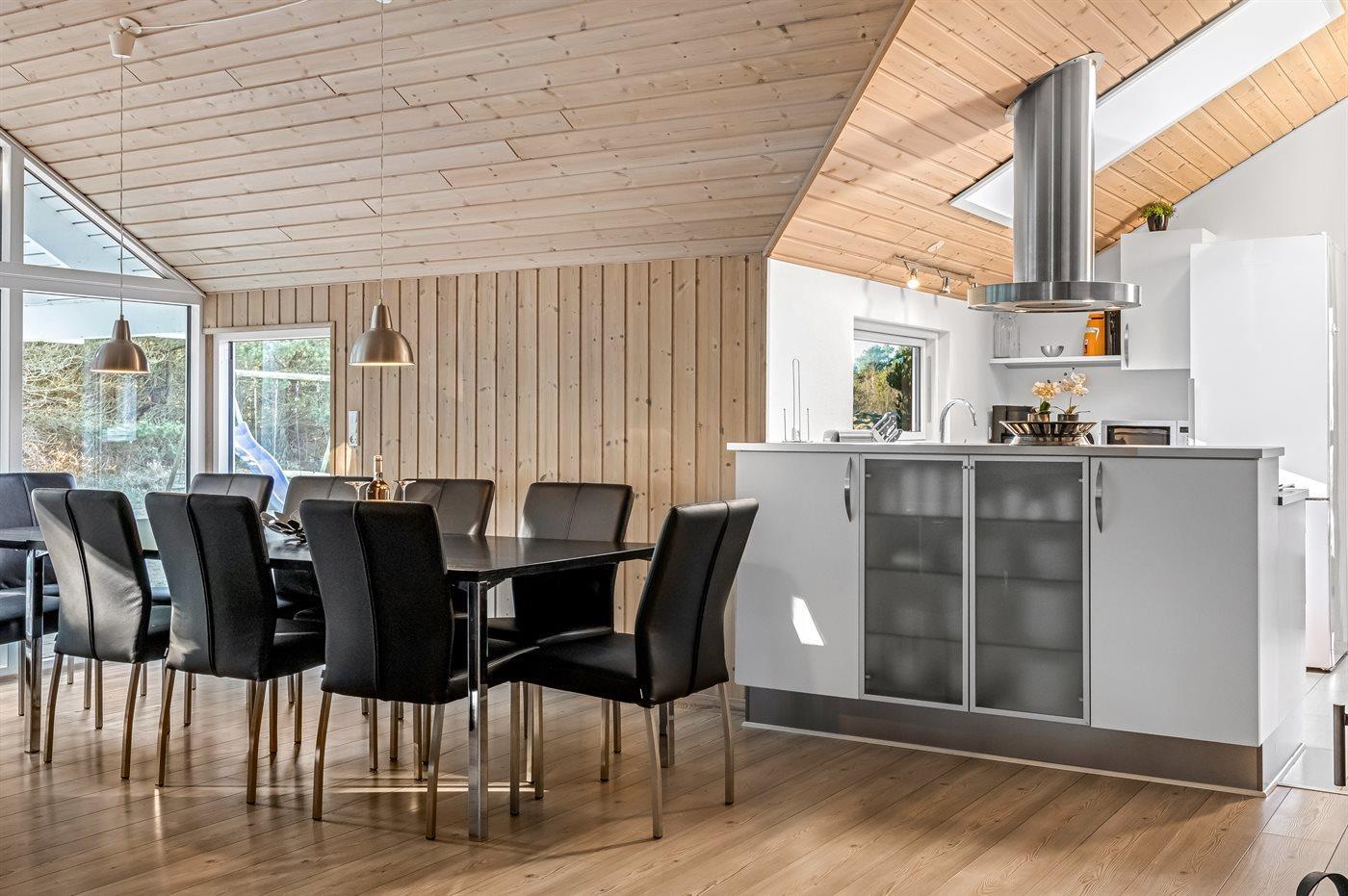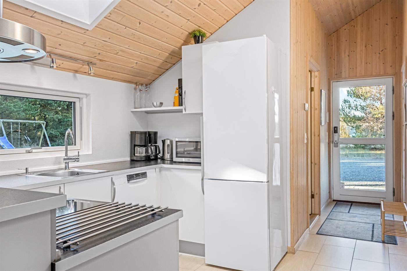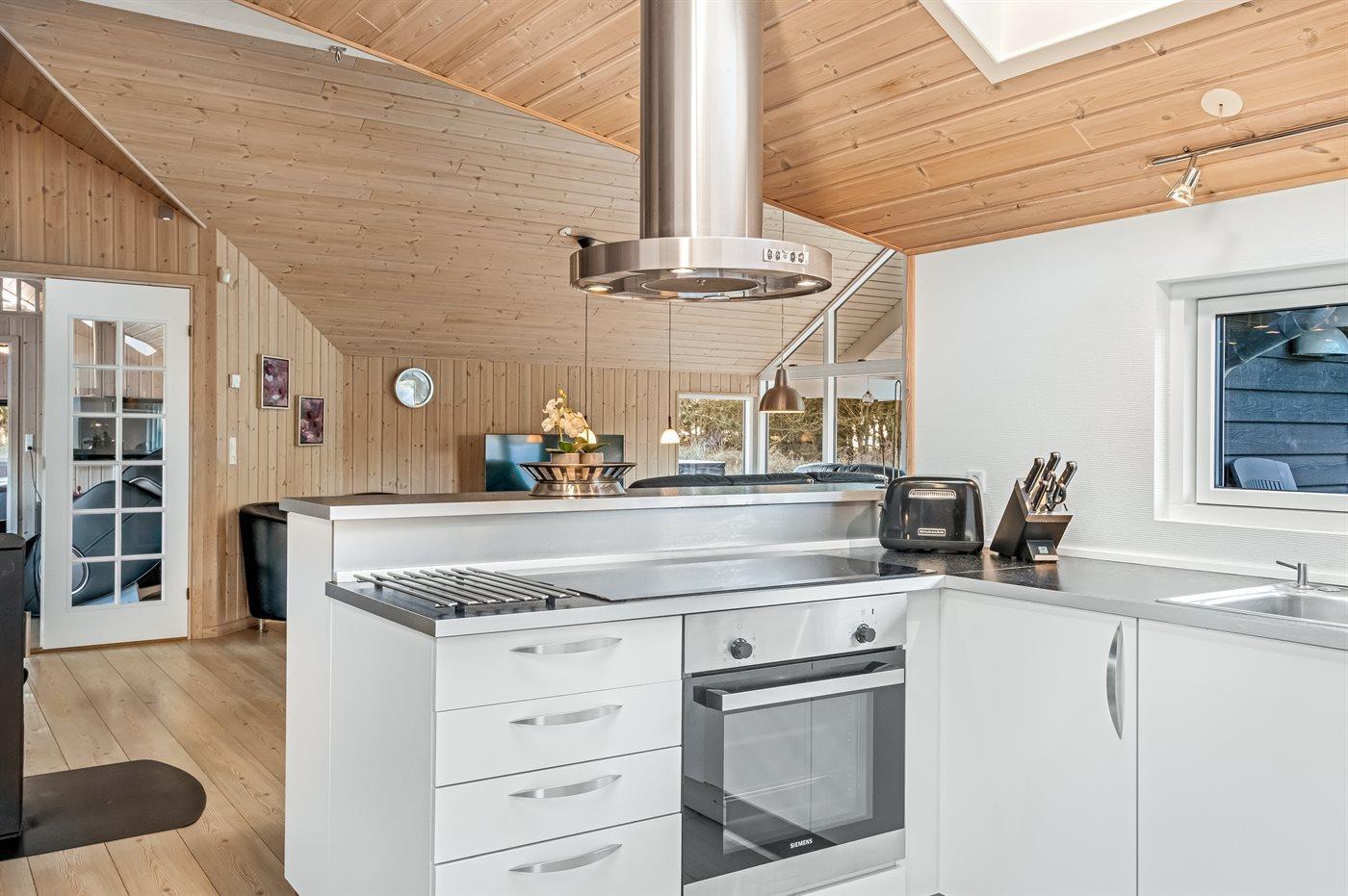 Køkkenet er udstyret med 1 køleskab. Der er 5 induktionskogeplader, varmluftovn, mikrobølgeovn samt opvaskemaskine.