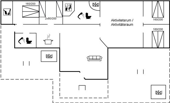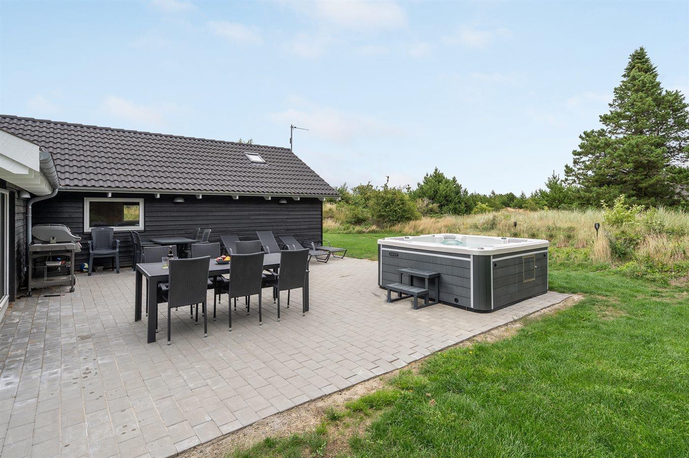 Nær Kromose og tæt på Vadehavet ligger dette skønne sommerhus på en stor naturgrund. Til huset hører en stor terrasse med havemøbler og grill samt en skøn udendørs spa (standvand) til 5-personer, som kan benyttes hele året. På den store grund findes der masser af legeredskaber her i blandt en stor hoppepude (maks. 9 personer). Bemærk: Huset er indrettet med hems, hvor I finder 4 af de i alt 12 sovepladser.