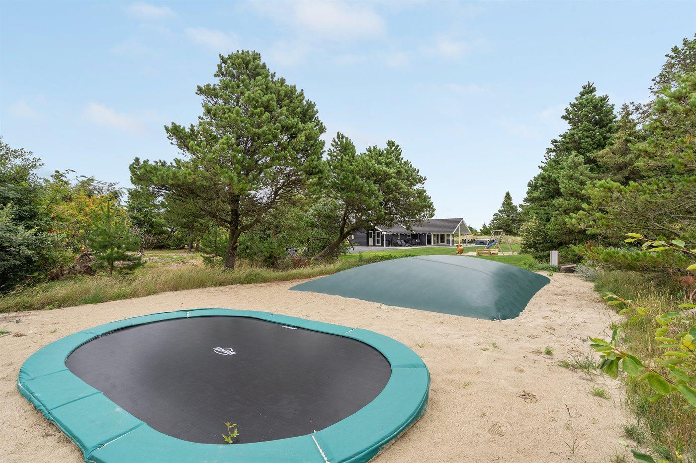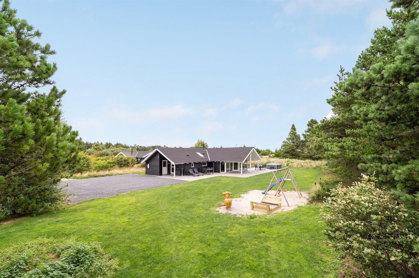 Ferieboligen er beliggende på en 2546 m² stor naturgrund. Der er 4500 m til havet. Der er 250 m til Vadehavet. Nærmeste forretning er beliggende i en afstand af 2500 m. Til ferieboligen hører 130 m² terrasseareal. Desuden er der 10 m² overdækket terrasse. Gynge. Sandkasse. Trampolin. Hoppepude til 9 personer. Der er 2 grill til rådighed. Der er installeret stik til opladning af elbil. Type 2 stik. Med 22 kW ladeeffekt. Parkering ved ferieboligen.