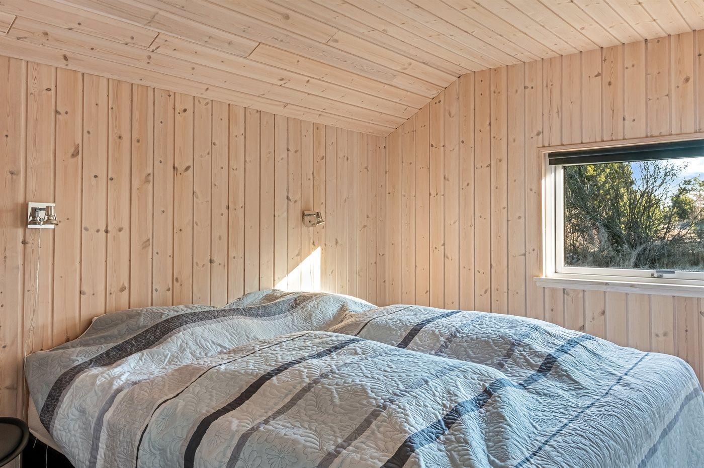 Der er i alt 4 soveværelser. Sovepladserne fordeler sig på: 6 sovepladser i dobbeltsenge. 2 sovepladser i enkeltsenge. 4 sovepladser på madrasser. 4 af disse sovepladser befinder sig på husets hems. Derudover er der 2 stk. barnesenge.