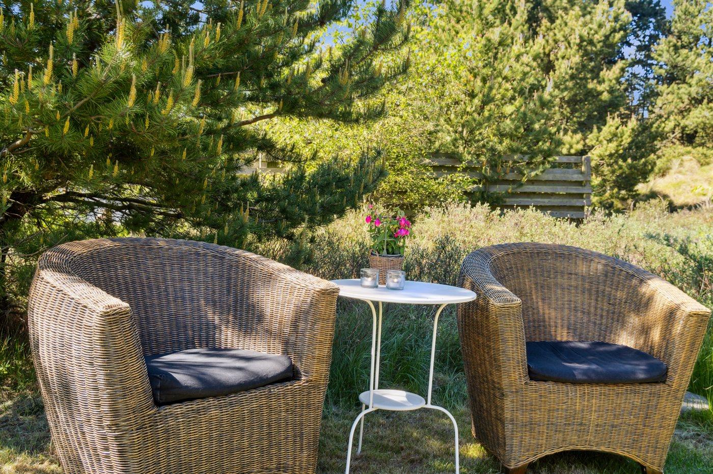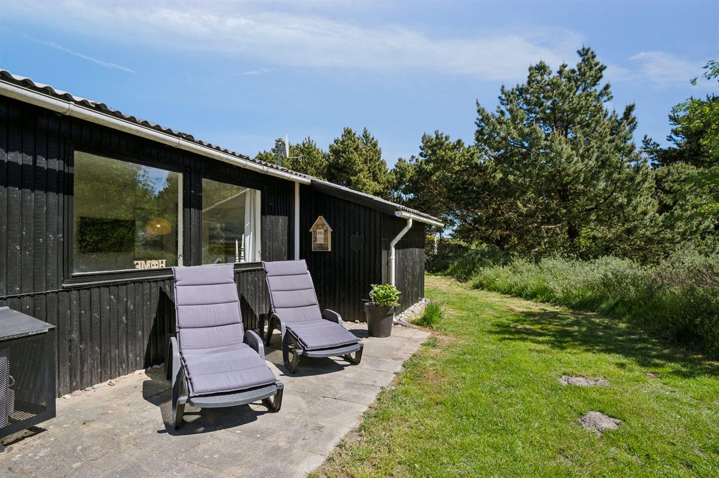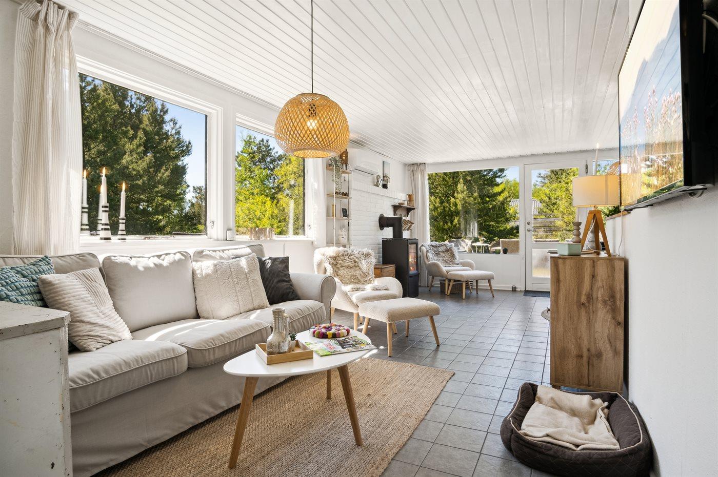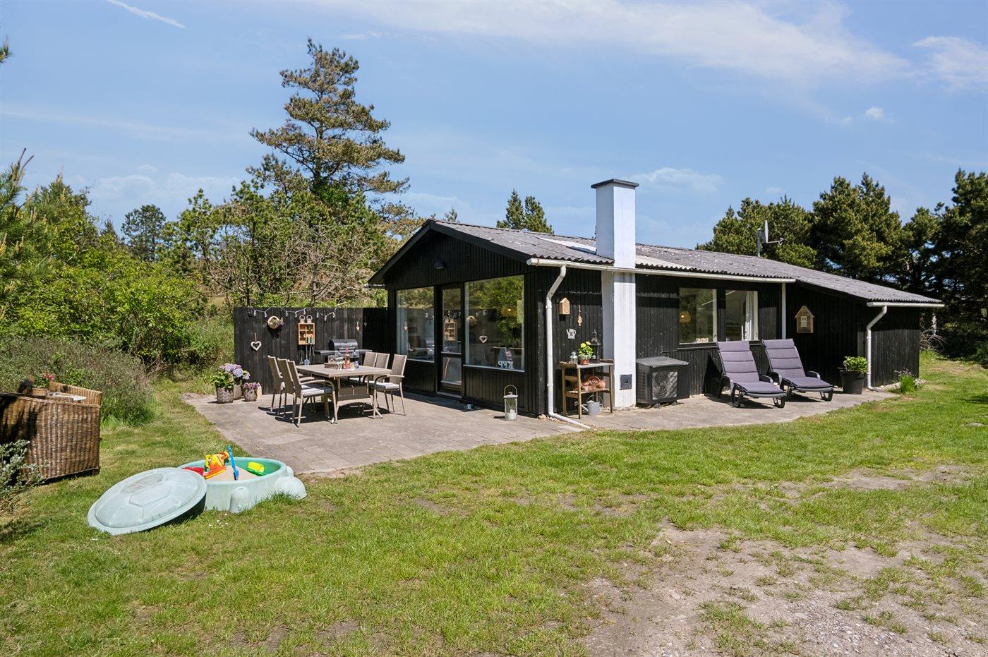Udenfor kan I nyde naturen på den åbne terrasse, hvor der findes grill, havemøbler og sandkasse.