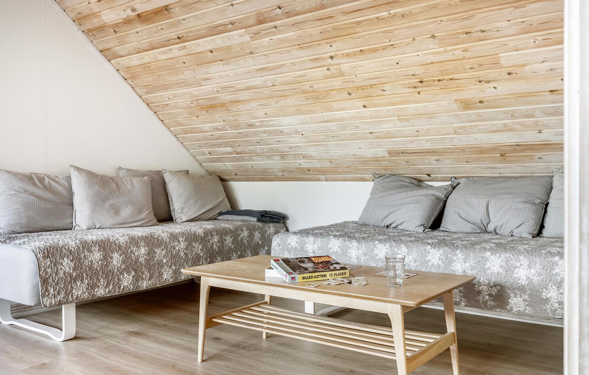 Dette komfortable og rummelige feriehus har alt, hvad I behøver til en længe ventet familiesammenkomst eller en hyggelig ferie med vennerne. Hold hyggelige grillmiddage og find sammen om det lange spisebord til længere måltider. Snak om svundne tider over et glas vin i den rummelige sofagruppe eller brug et af de hyggelige opholdsrum til stille læsning.