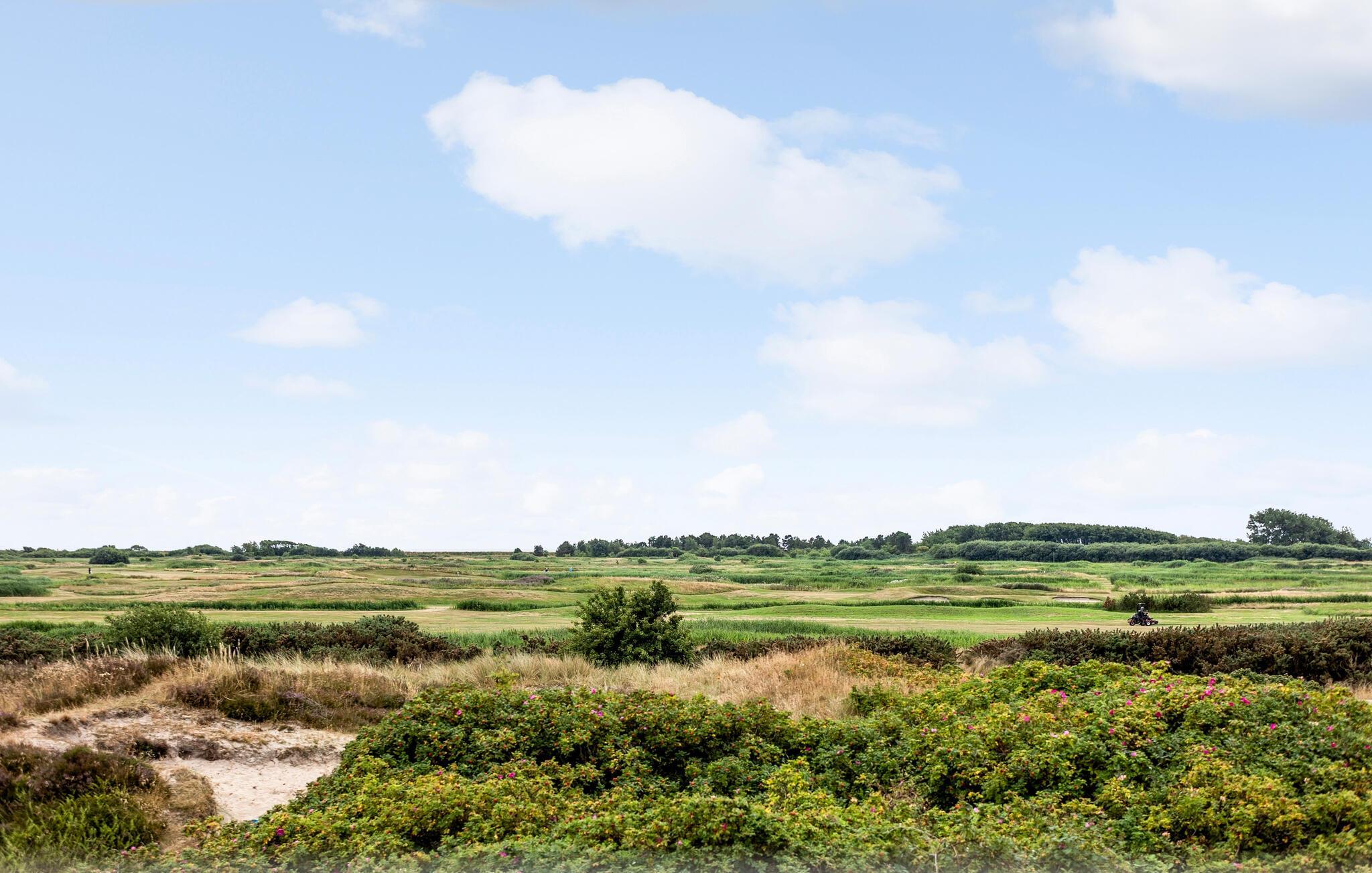 Hyggeligt feriehus på Rømø med udsigt til klitlandskab og adgang til vandland for afslapning og familieaktiviteter.