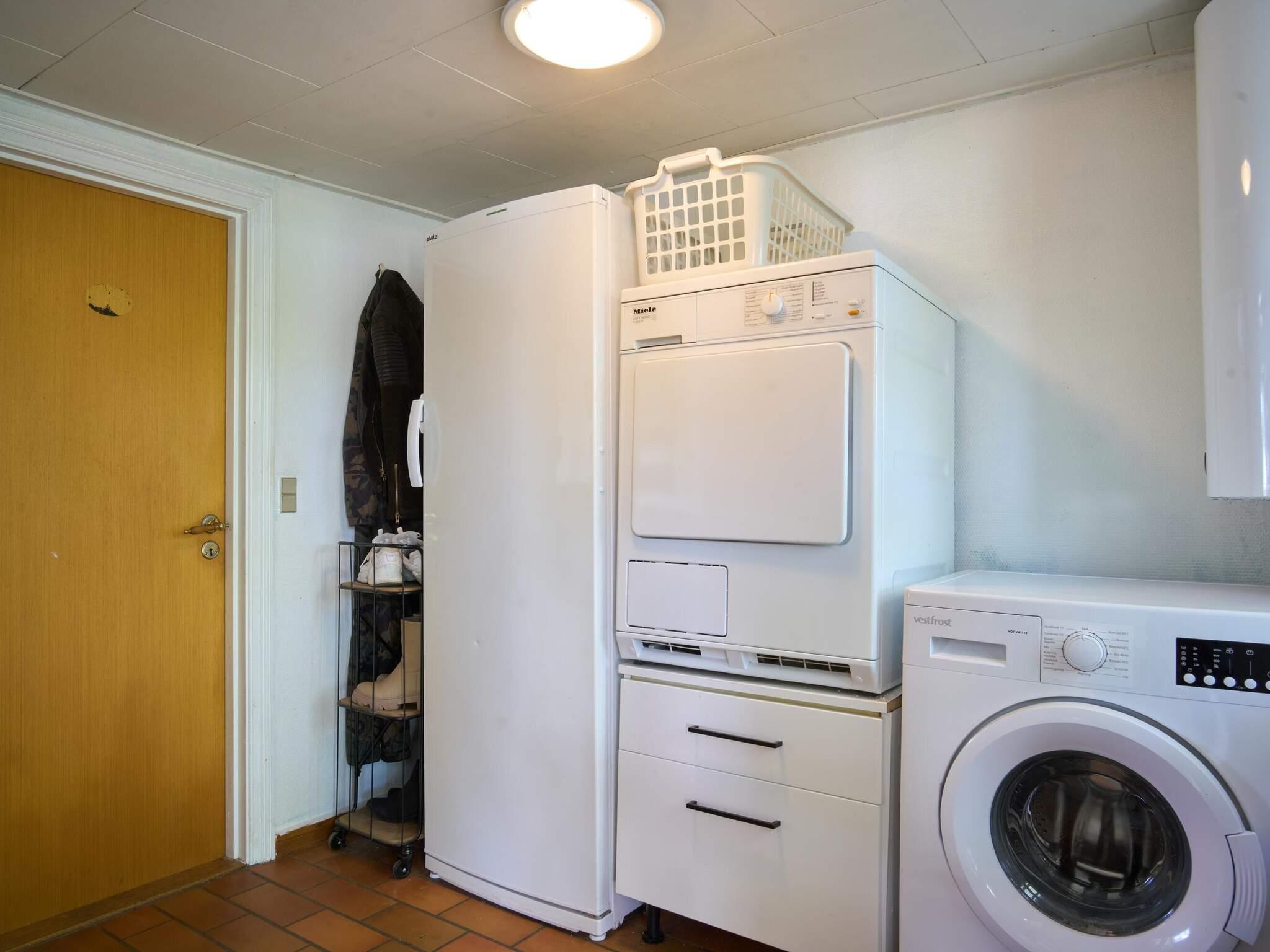 Køkken: El-komfur, køleskab m/frostboks, kaffemaskine, opvaskemask.