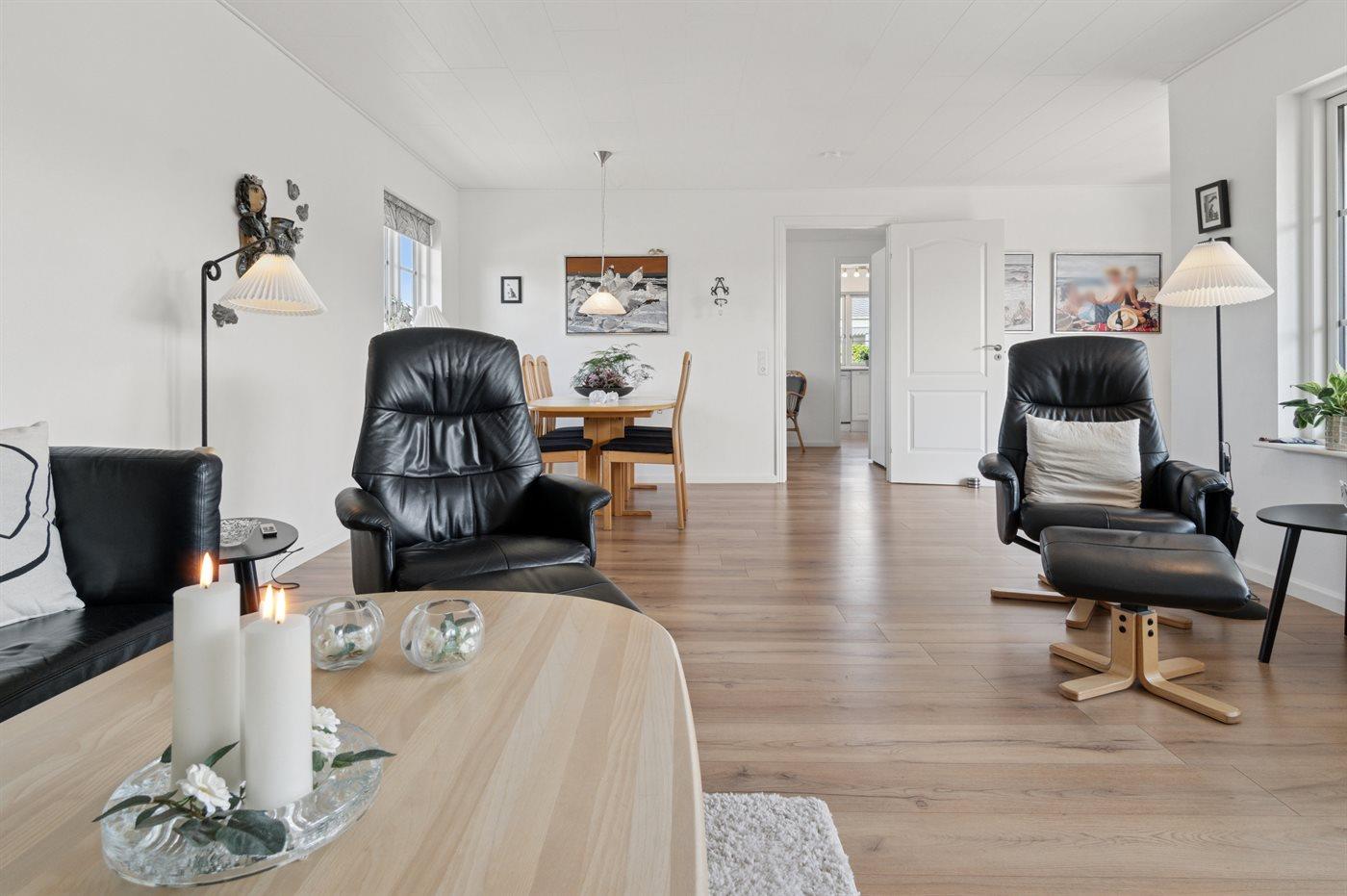 Den store velplejede grund indbyder til afslapning og på træterrassen eller den overdækkede terrasse kan man nyde frokosten eller en god kop kaffe i det fri. Den store stue er præget af det lyse interiør og den behagelige møblering. Køkkenet byder på alle de nødvendige faciliteter, man har brug for når feriemåltiderne skal tilberedes og fremstår velfungerende. Der findes et moderne badeværelse samt et gæstetoilet.
