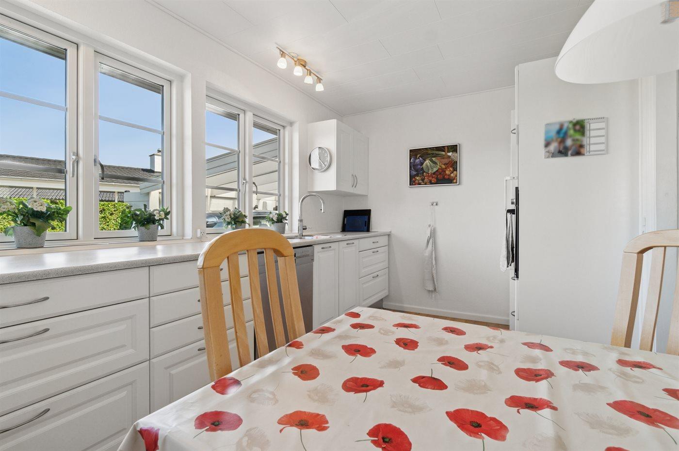 Køkkenet er udstyret med 1 køleskab. Der er 4 induktionskogeplader, varmluftovn, mikrobølgeovn samt opvaskemaskine.