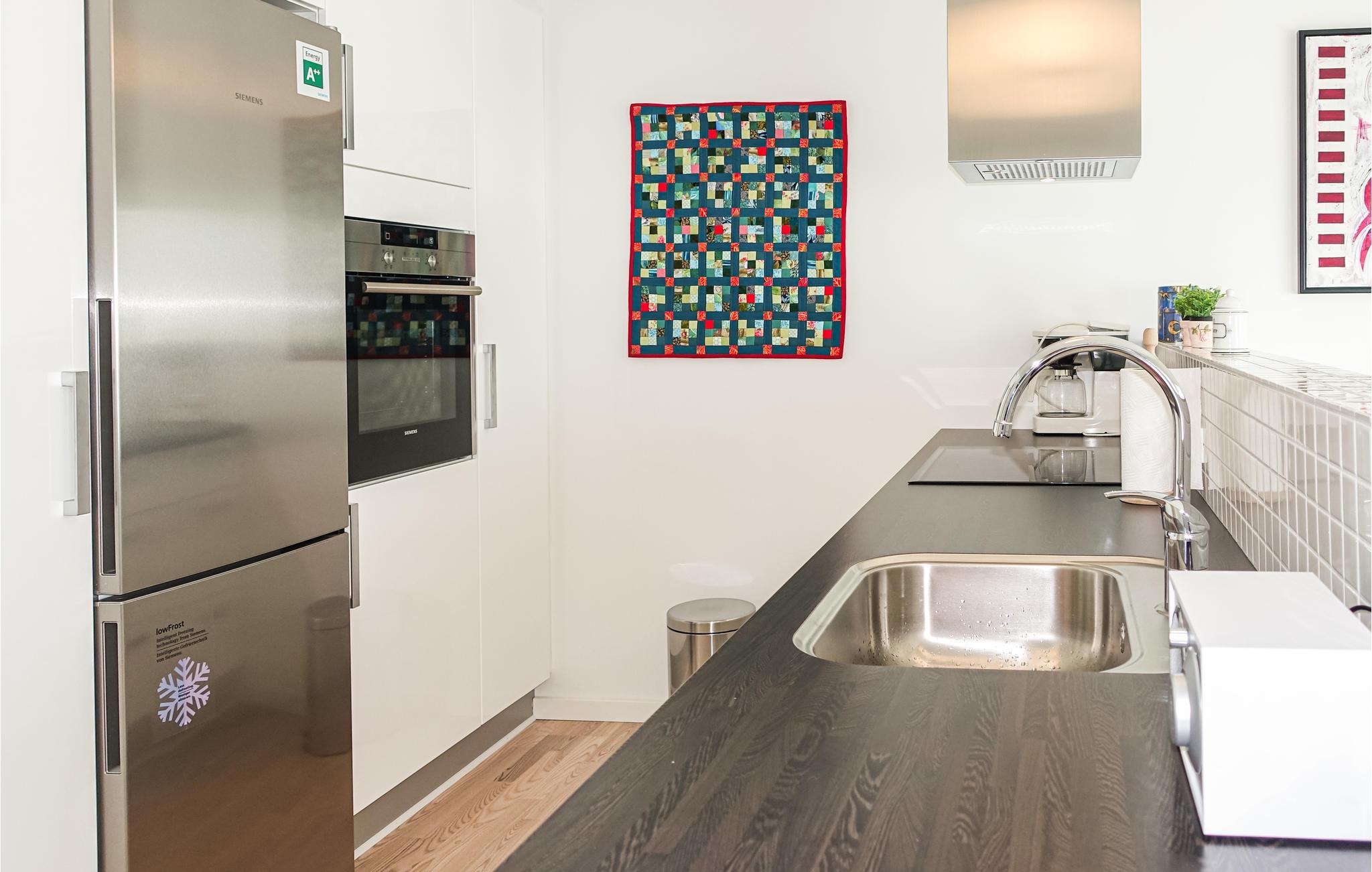 Ejendommen, der rummer seks lejligheder med rolige naboer, ligger centralt i Rønne, lige ud til lille sø og kun godt 1 km fra en skøn, børnevenlig sandstrand, hvor I kan tilbringe mange dejlige timer med at bade og sole jer. Lejligheden består af en dejlig og lys opholdsstue med TV, radio og flot udsigt til søen, et åbent, veludstyret køkken med bl.a. opvaskemaskine, et flot badeværelse med vaskemaskine, tørretumbler, og gulvvarme og to gode soveværelser. I har adgang til en have og en dejlig, solrig fællesterrasse med komfortable havemøbler og en grill, så I kan tilberede lækre feriemåltider. Der er gratis internet i lejligheden.