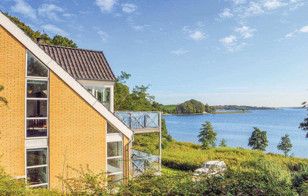 Nyd panoramaudsigt over Flensborg Fjord i dette arkitekttegnede feriehus med sauna, spabad og tæt på vandet.