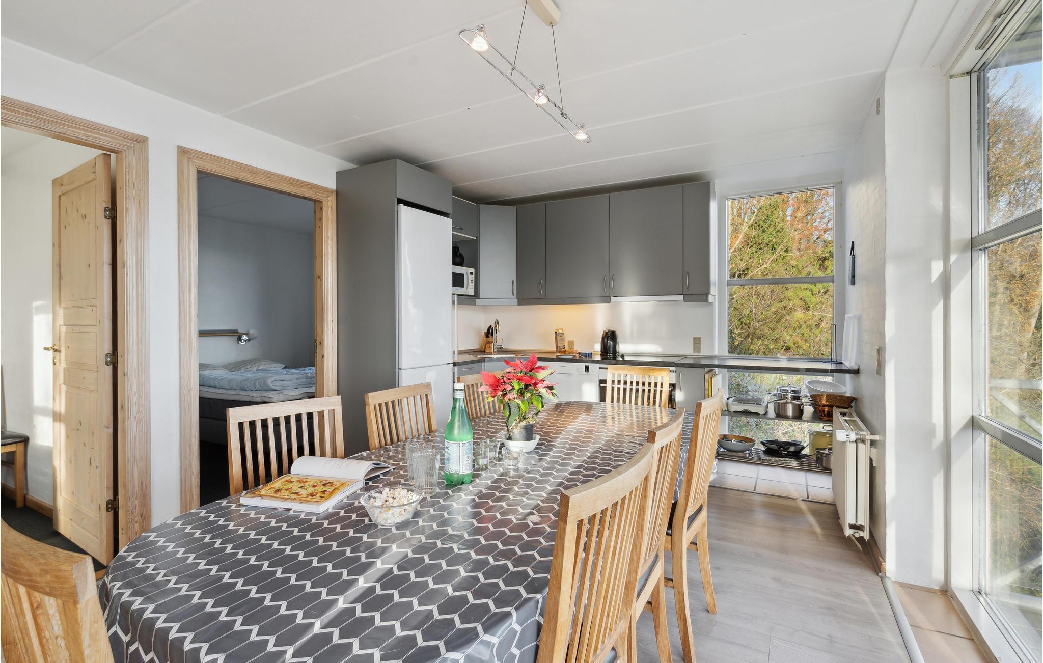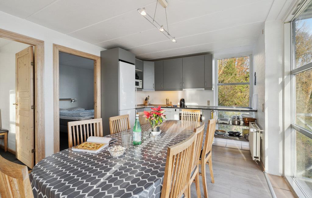 Oplev en ferie i dette imponerende tre-etagers feriehus i Rønshoved, tegnet af en arkitekt. Nyd den betagende panoramaudsigt over Flensborg Fjord, som er direkte synlig fra husets rummelige værelser og altaner. Huset byder på funktionel og komfortabel indretning, der vil glæde både familier og par. Den lyse stue med højt til loftet og store glasfronter inviterer til at blive hængende. Føl jer godt tilpas foran pejsen eller brug de komfortable sofaer til afslappende aftener. Det moderne, åbne køkken giver mulighed for at fremtrylle kulinariske lækkerier, som I så kan nyde ved det store spisebord med udsigt til vandet.