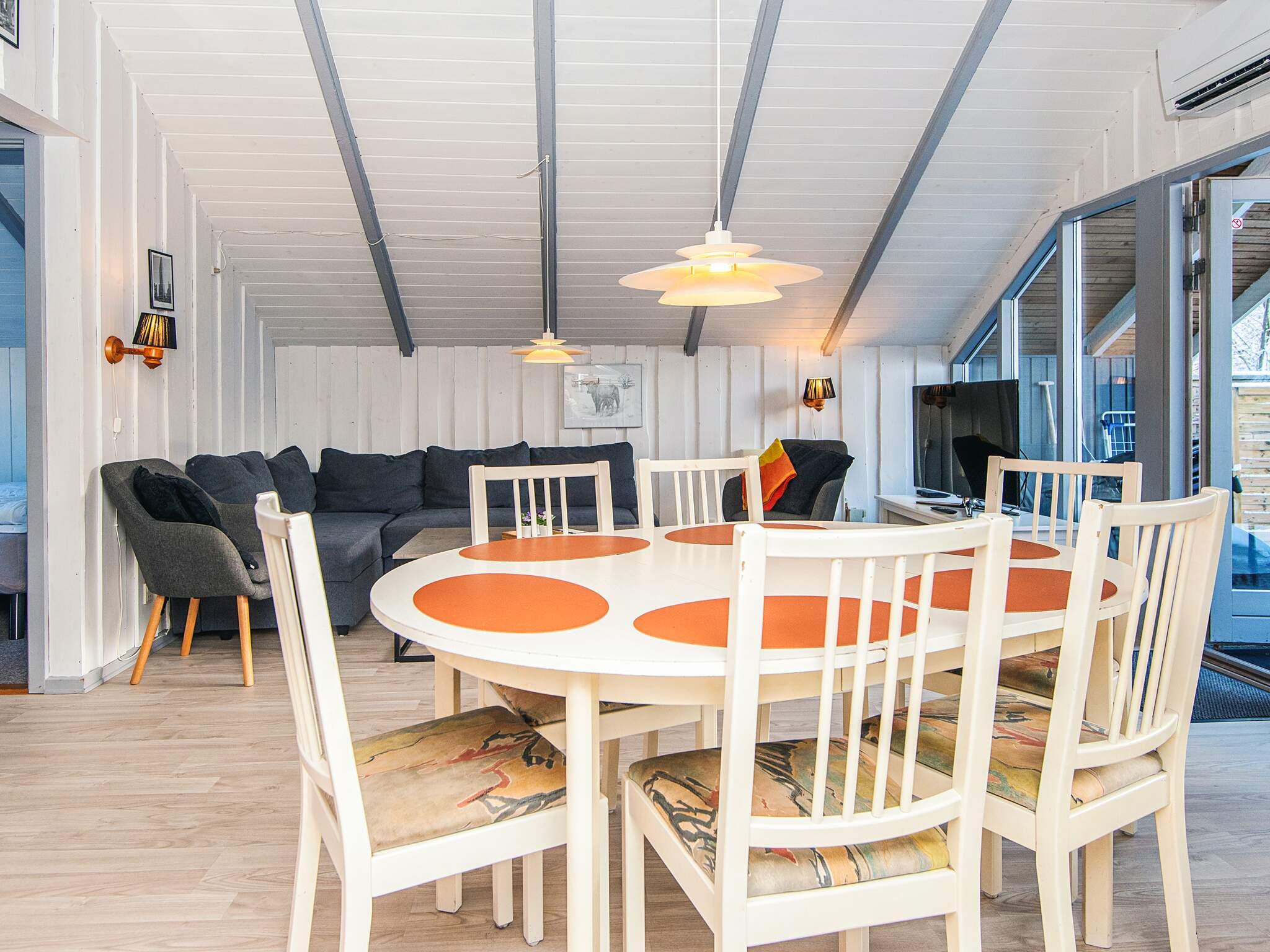 Dette fritidshus er ideelt for en afslappende og hyggelig ferie med familien. Huset rummer to soveværelser, hvor det ene er indrettet med en dobbelt elevationsseng for ekstra komfort. Derudover er der en dobbelt opredning i stuen, hvilket giver plads til i alt seks overnattende gæster. Huset blev renoveret i 2020 og fremstår moderne og indbydende. Det ligger på en stor grund, perfekt til udendørs leg og spil for både børn og voksne. Kun 50 meter fra huset finder du en legeplads hvor der også er mulighed for at grille, hvilket gør det ideelt til hyggelige sommeraftener. Fritidshuset er også velegnet til gæster med hund, da terrassen nemt kan lukkes helt af, så hunden kan være trygt udenfor. Som en ekstra bonus er der fri adgang til Thyregod Badeland/Svømmehal, som ligger blot 4 km fra huset, og giver mulighed for sjov og afslapning i vandet. Dette hus kombinerer familiehygge, aktiviteter og komfort i naturskønne omgivelser. Der er gratis adgang til vandlandet ved dette hus.